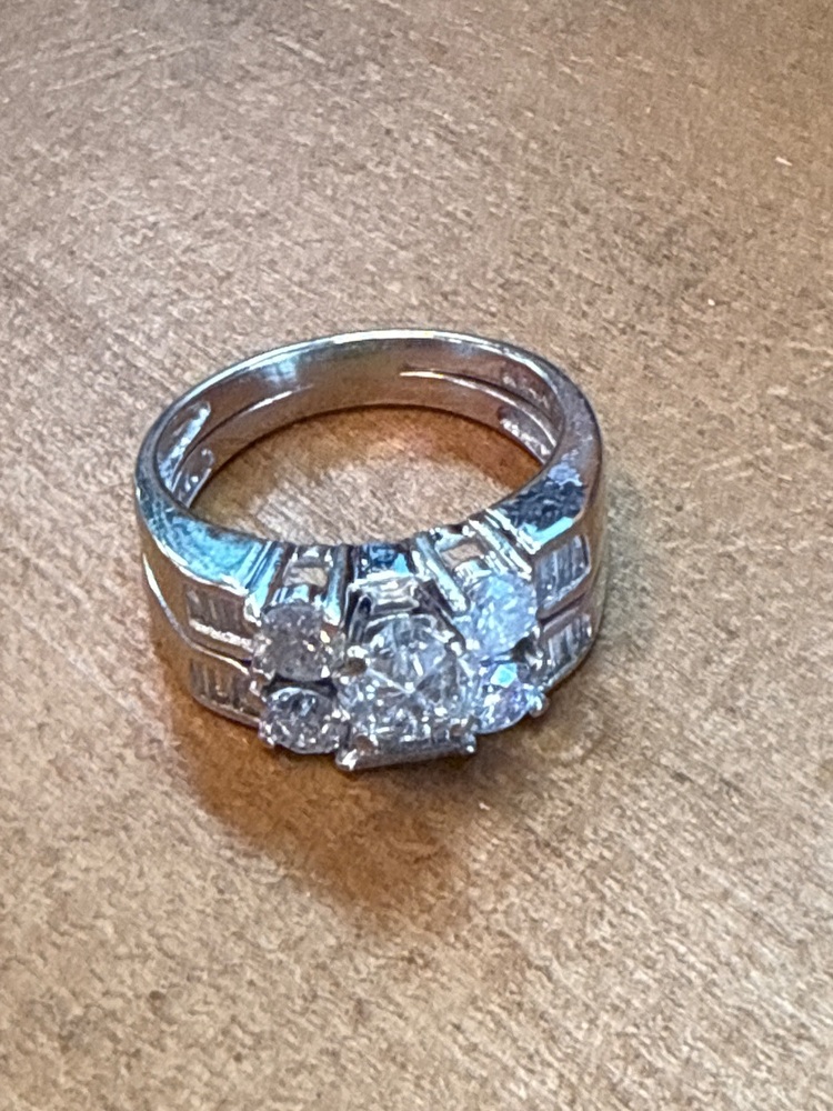 Uncover the symbol of eternal love with our Wedding Set Ring Jewelry! Crafted from luminous 14kt white gold, this set weighs an elegant 7.00 grams. The beauty of this exquisite set is elevated by the sparkling diamonds that grace its design. A shining pledge of commitment, this 14kt W/G diamond wedding set is an eloquent fusion of grace and luxury, turning your special day into an unforgettable memory.