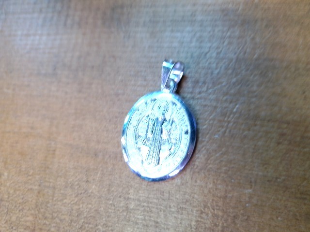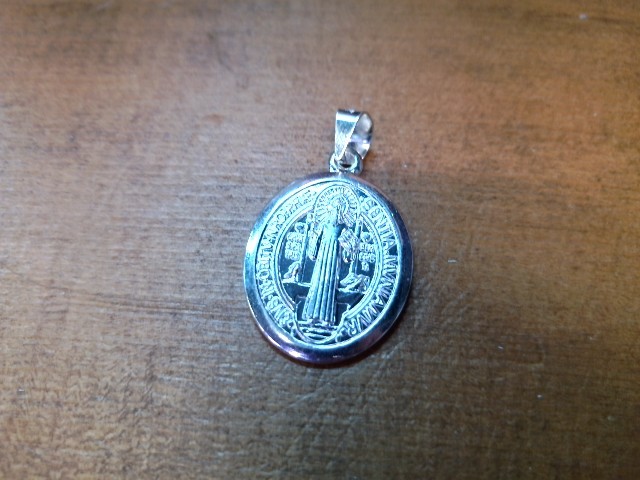 Silver 4.20grams Pendant Sterling Silver High Polished Oval Saint Benedict 26mm