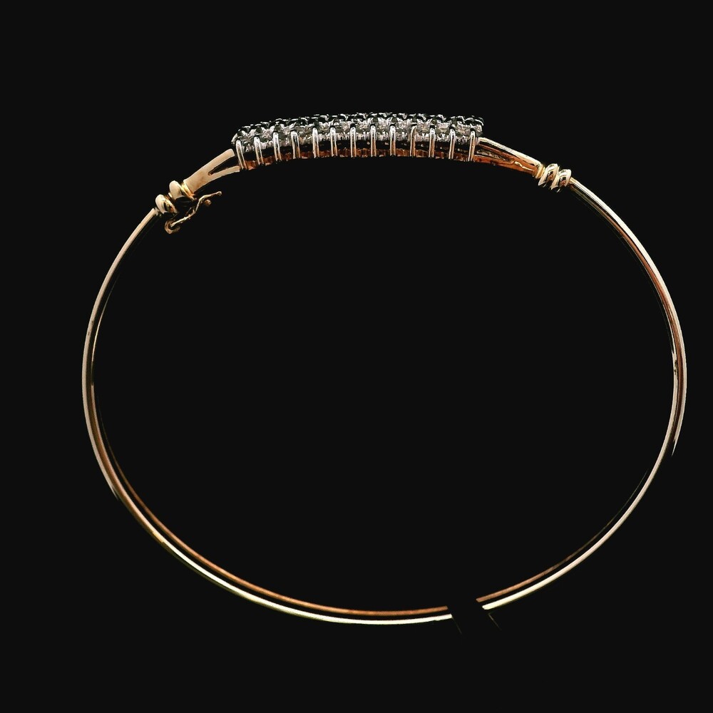 Shows light surface wear from normal use. Diamonds are secure and the bangle is structurally solid.