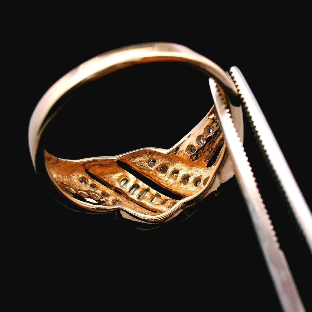 Light normal wear. Stones are secure and the ring is structurally solid.