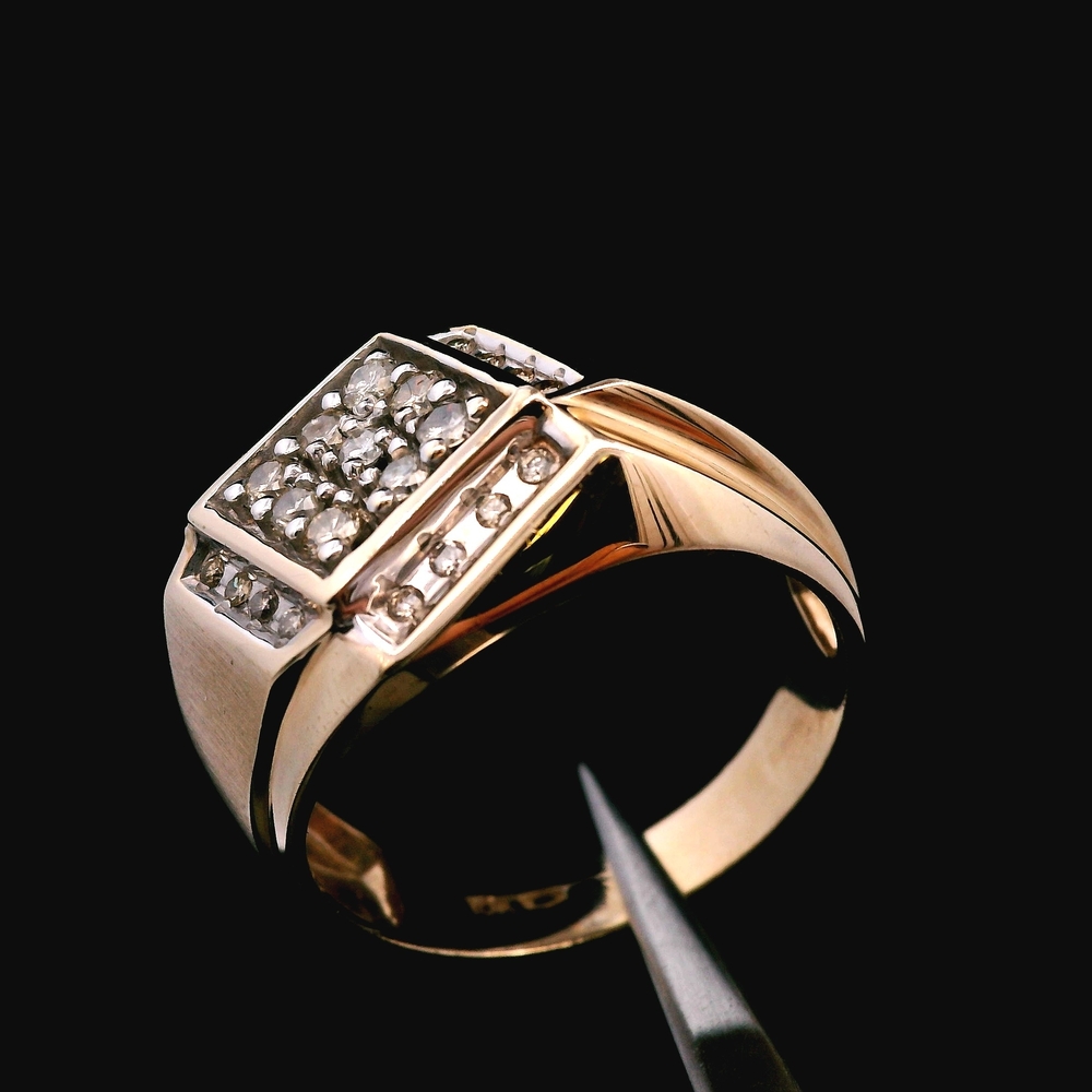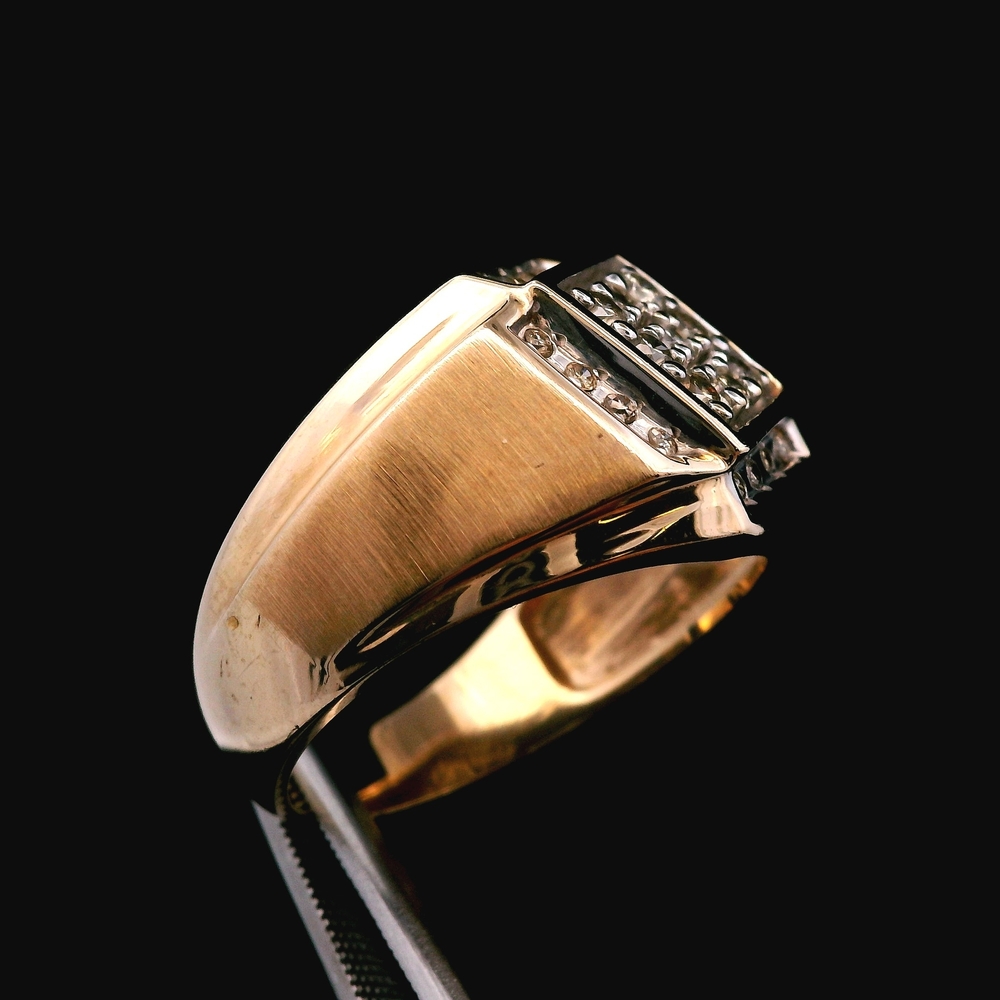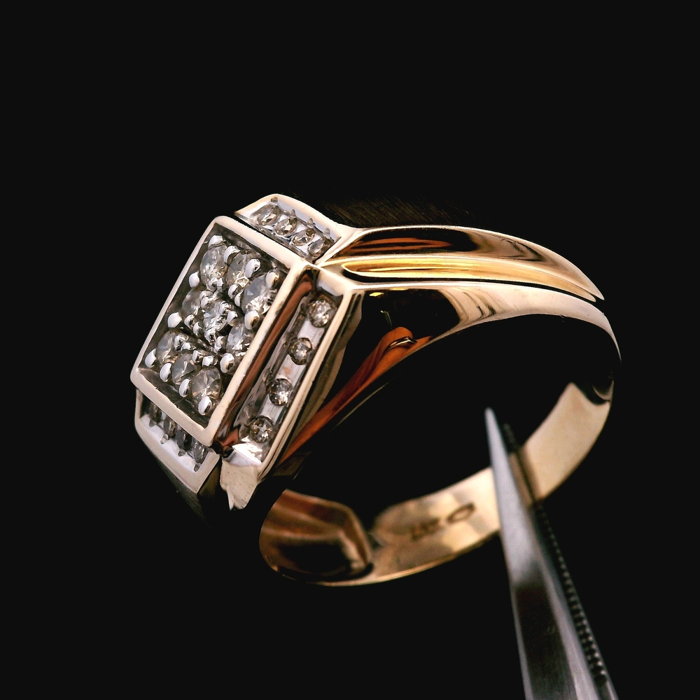 This 10KT yellow gold ring features approximately 1/3cttw in diamonds, adding a bright and eye-catching sparkle to the classic gold band. The design offers a bold presence while remaining comfortable for daily wear.