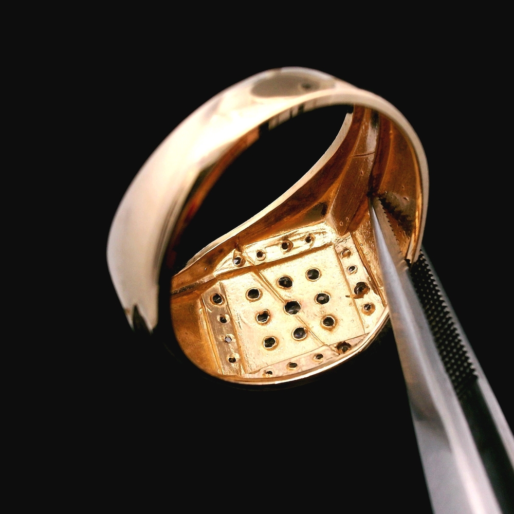 La talla del anillo es 10.5, con un peso total de 4.00 DWT (6.22 gramos).