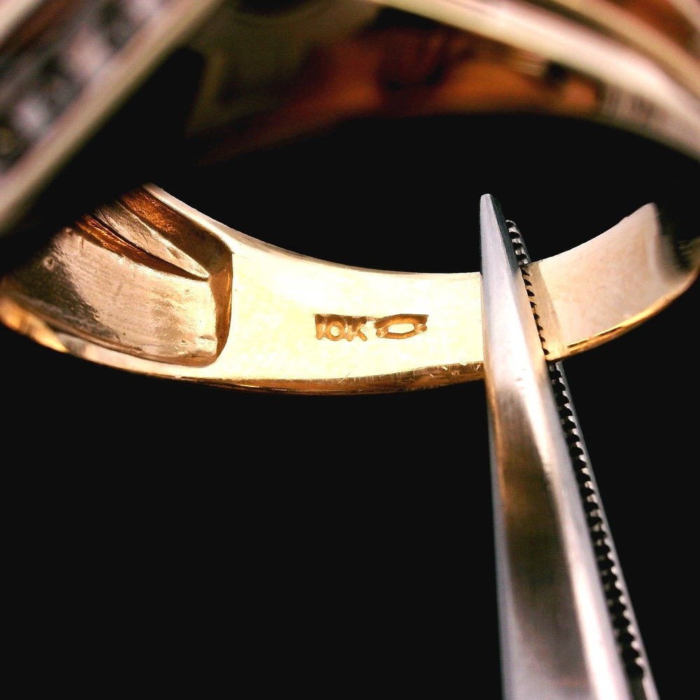 Presenta desgaste ligero normal. Los diamantes están seguros y el anillo está estructuralmente sólido.