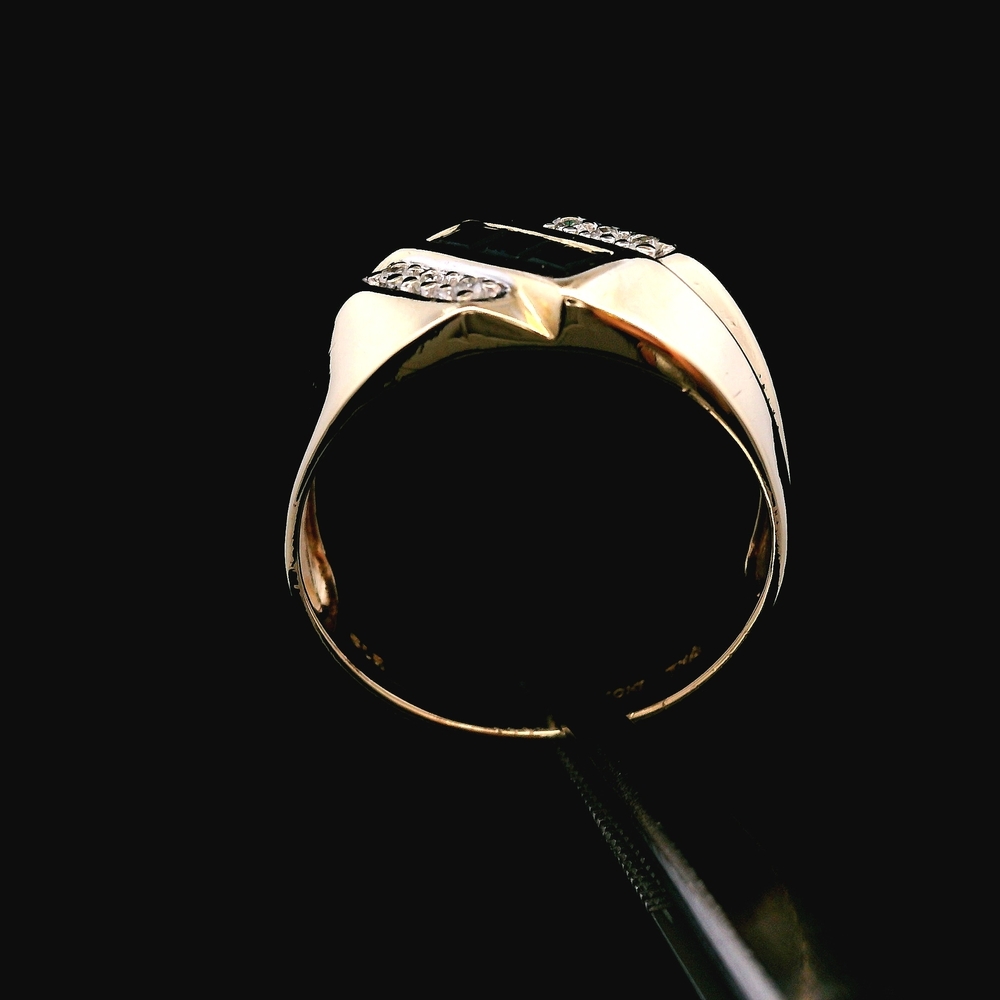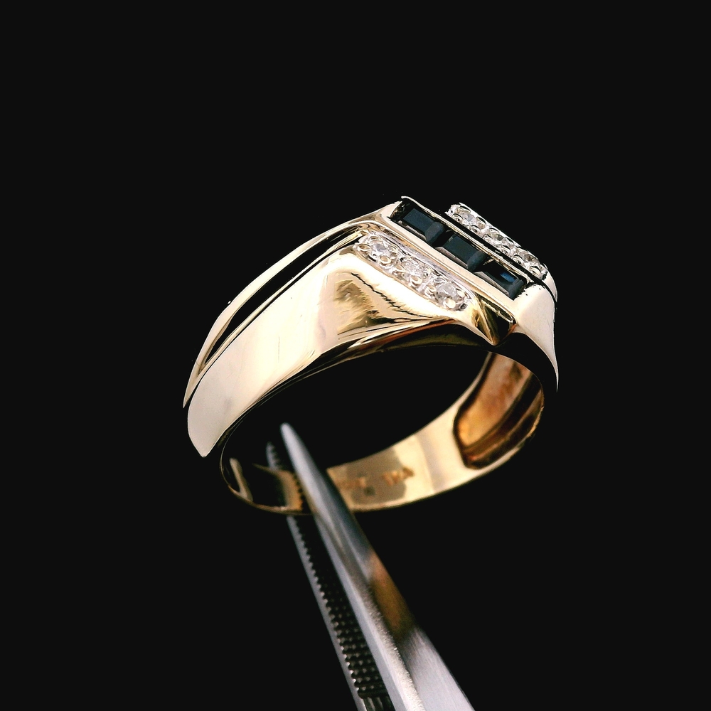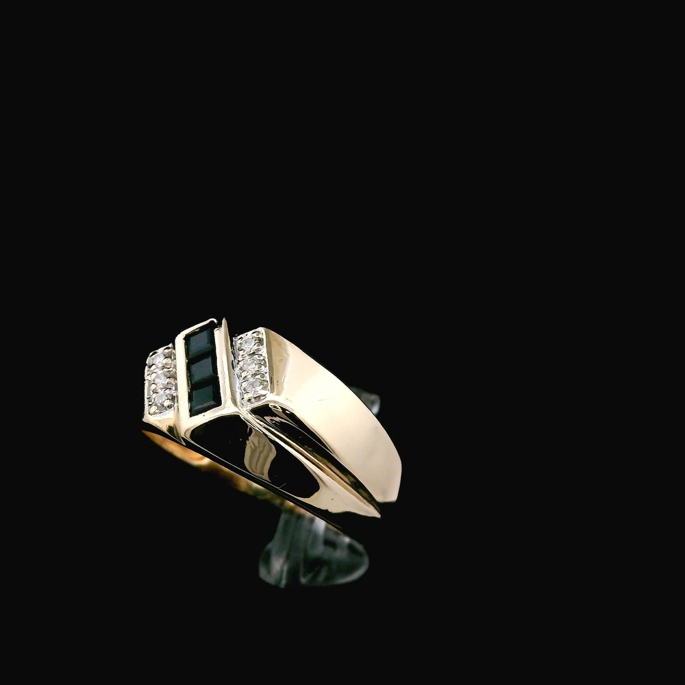 Este anillo de oro amarillo de 10KT presenta zafiros naturales acentuados con aproximadamente 3 puntos en diamantes, ofreciendo un brillo suave y elegante. El tono cálido del oro combina muy bien con el azul profundo de los zafiros. Talla 7.25, con un peso total de 2.0 DWT (3.11 gramos). Incluye caja genérica para anillo.