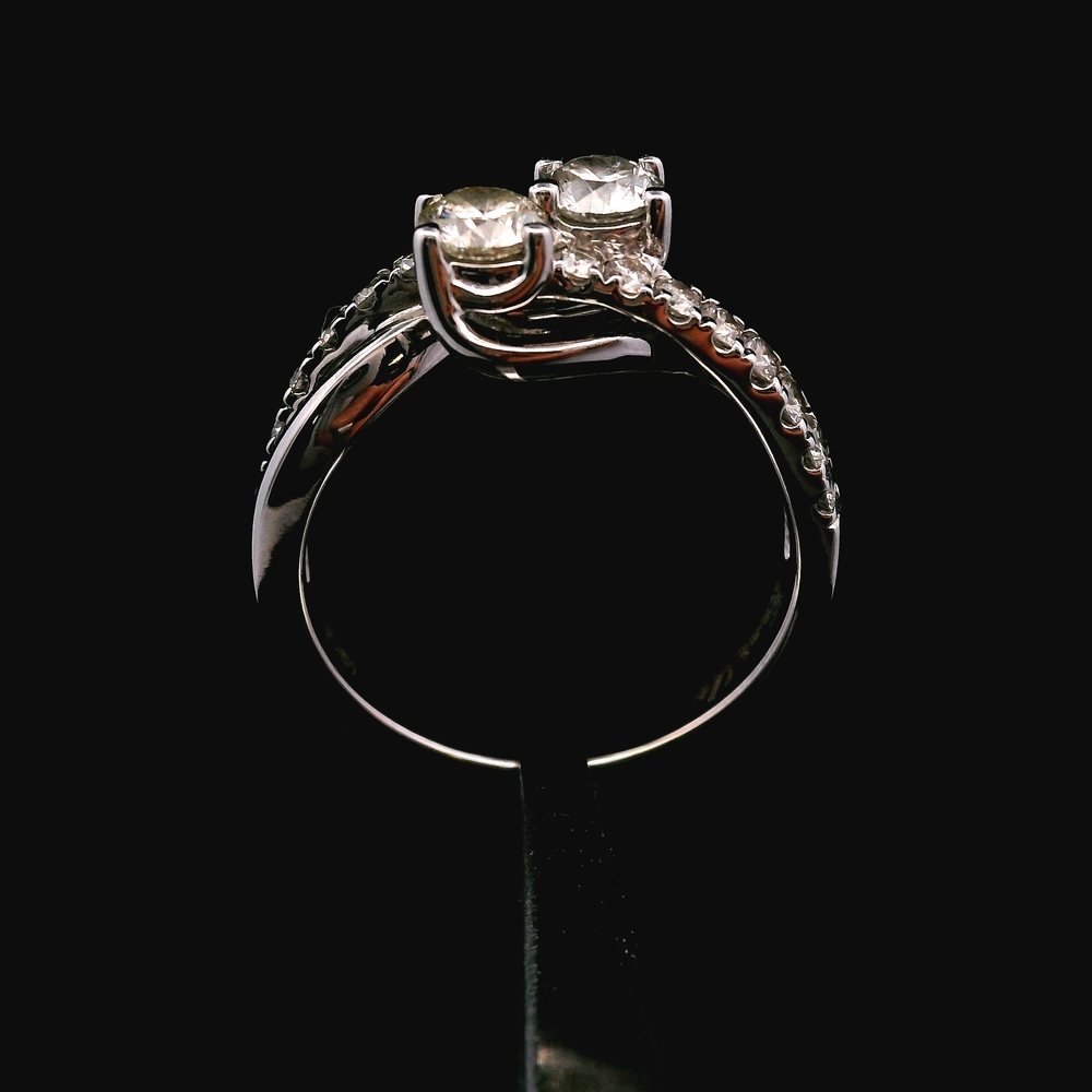 Descripción del Artículo: Este elegante anillo está elaborado en oro blanco de 14K y presenta aproximadamente 0.85 CTTW de diamantes. Es una talla 6.75 y tiene un peso total de 3.4 dwt (aproximadamente 5.3 gramos). El artículo está en buenas condiciones. Por favor revise todas las fotos detenidamente para evaluar la condición cosmética y las características naturales de las piedras, ya que el artículo que se muestra es exactamente el que recibirá. Tenga en cuenta: El precio puede variar dependiendo del precio del oro y la plata.