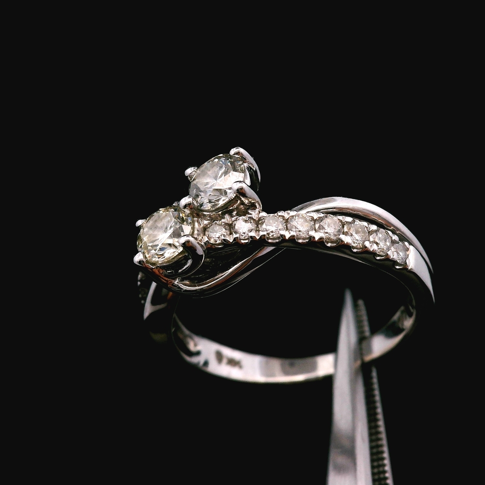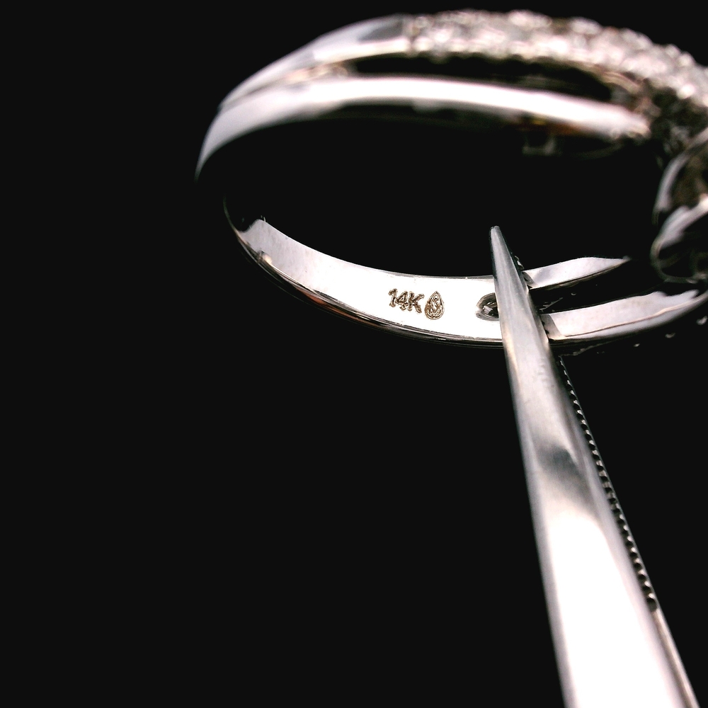 Item Description: This elegant ring is crafted in 14K white gold and features approximately 0.85 CTTW of diamonds. It is a size 6.75 and has a total weight of 3.4 dwt (approximately 5.3 grams). The item is in good condition. Please review all photos closely to assess cosmetic condition and the natural characteristics of the stones as the item shown is the exact one you will receive. Please note: Price may vary depending on the price of gold and silver.