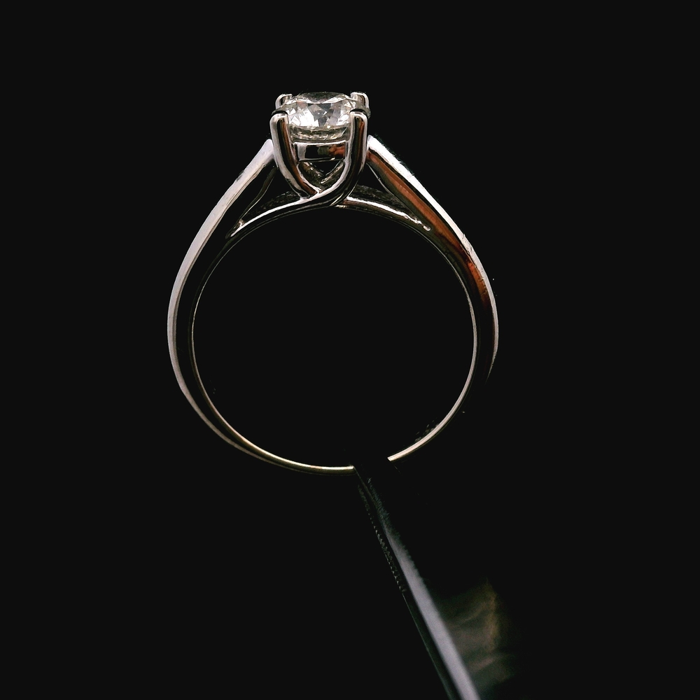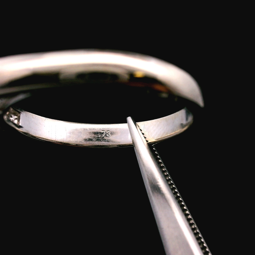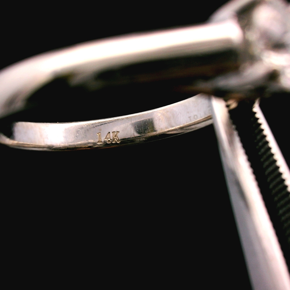 Este impresionante anillo de diseñador es una pieza de corte ideal Tolkowsky elaborada en oro blanco de 14K. Cuenta con diamantes deslumbrantes con un peso total de 0.73 quilates, con grado de claridad I1 y color I. El anillo incluye la tarjeta de autenticidad GSI original. Es talla 6.5 y tiene un peso total de 2.60 dwt (aproximadamente 4.0 gramos). El artículo está en buenas condiciones. Por favor revise todas las fotos detenidamente para evaluar la condición cosmética, ya que el artículo que se muestra es exactamente el que recibirá. Tenga en cuenta: El precio puede variar dependiendo del precio del oro y la plata.