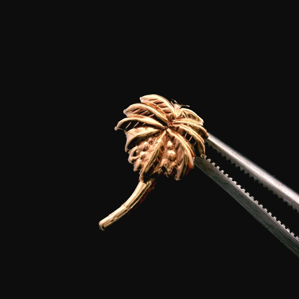 Estos encantadores aretes de broquel están elaborados en oro amarillo de 14K y presentan un divertido diseño de palmera, perfecto para añadir un toque tropical a su estilo. El peso total es de 0.30 dwt (aproximadamente 0.5 gramos). El artículo está en buenas condiciones. Por favor revise todas las fotos detenidamente para evaluar la condición cosmética, ya que el artículo que se muestra es exactamente el que recibirá. Tenga en cuenta: El precio puede variar dependiendo del precio del oro y la plata.