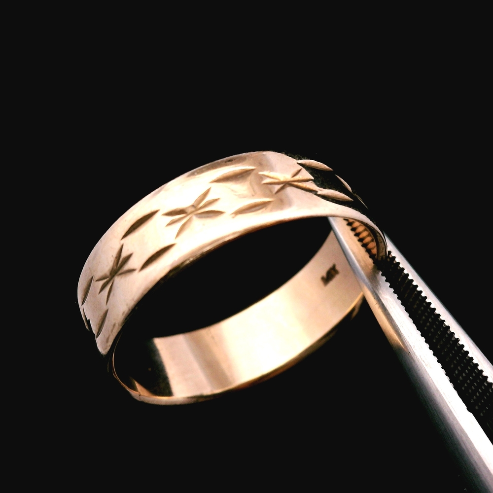 This classic band ring is crafted in 14K yellow gold and features a simple, polished design. It is a timeless piece suitable for use as a wedding band or a comfortable everyday ring. It is a size 9 and has a total weight of 2.0 dwt (approximately 3.1 grams). The item is in good condition. Please review all photos closely to assess cosmetic condition as the item shown is the exact one you will receive. Please note: Price may vary depending on the price of gold and silver.