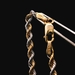 This 14KT two-tone gold rope chain features intertwined yellow and white gold strands that add depth and shine to the classic rope style. It measures 18 inches in length and weighs 3.5 DWT, making it a versatile piece suitable for everyday wear or pairing with a pendant.