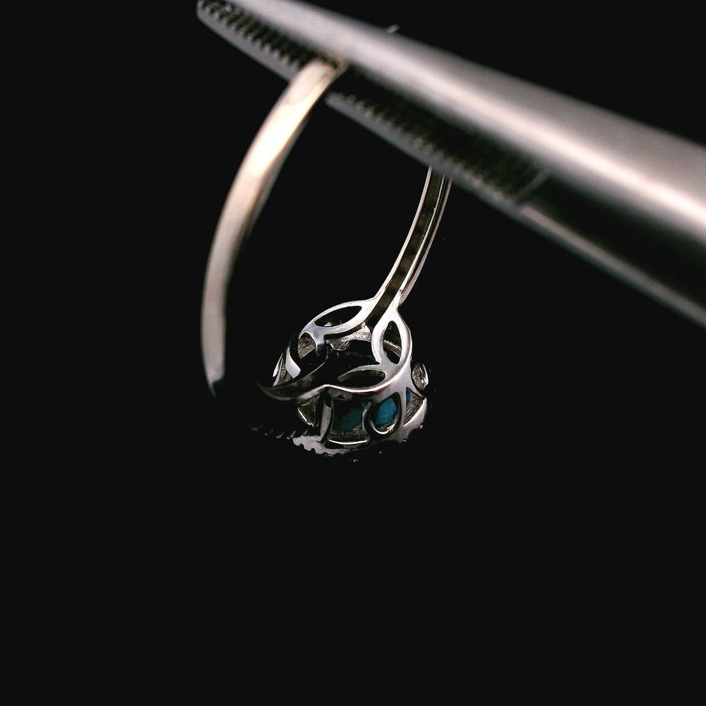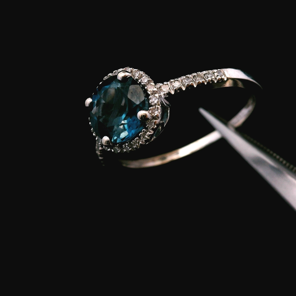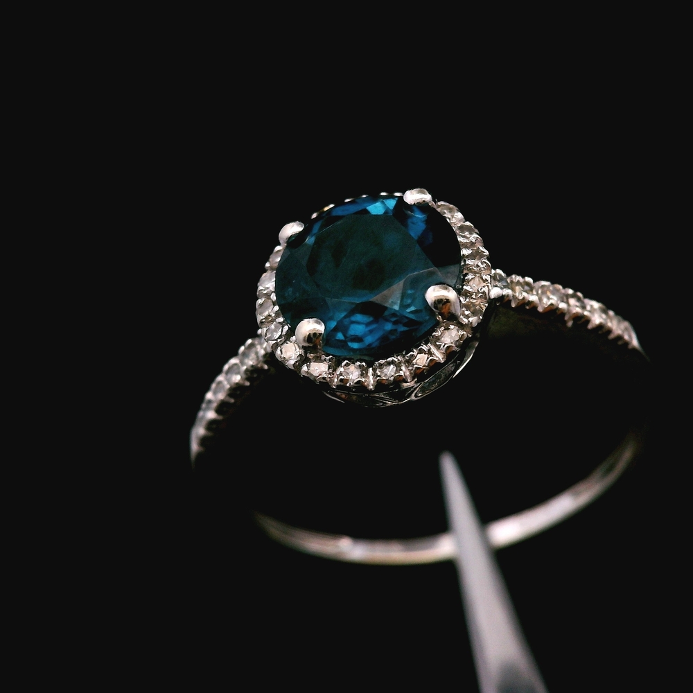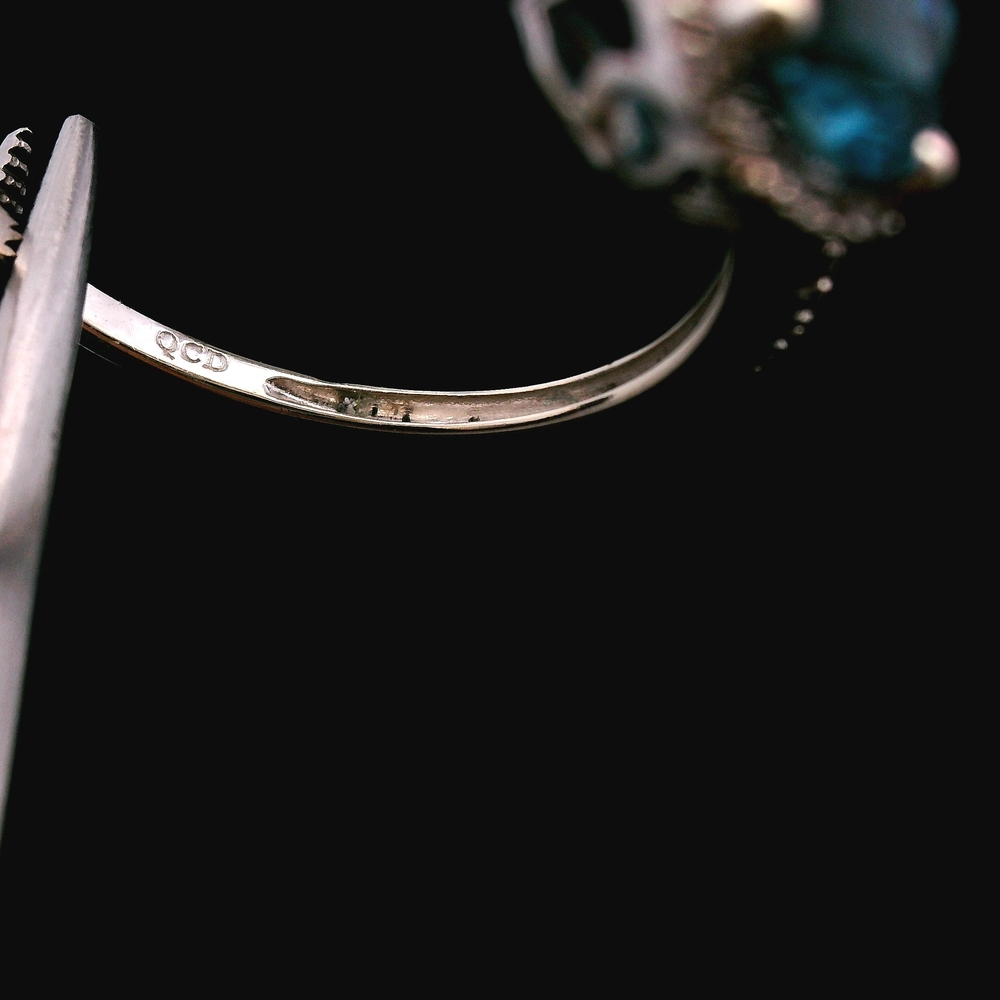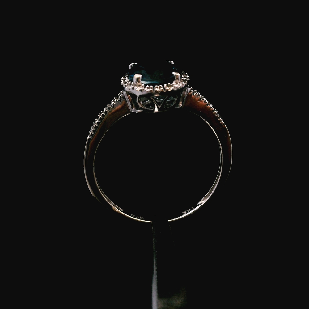 This 14KT white gold ring features a bright sky-blue topaz accented with sparkling diamonds, all in good condition with light, normal wear. The cool white gold setting enhances the gemstone’s vivid color and provides an elegant, modern look. Weighing 1.3dwt, it has a lightweight and comfortable feel suitable for daily wear or special occasions. The size 7 fit makes it an easy addition to any jewelry collection.