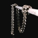 This 14KT white gold bracelet features sparkling CZ stones in a clean and elegant design suitable for everyday wear or stacking with other bracelets. Bracelet measures 7 inches in length and has a total weight of 5.3 DWT (8.24 grams). Includes a generic jewelry box.