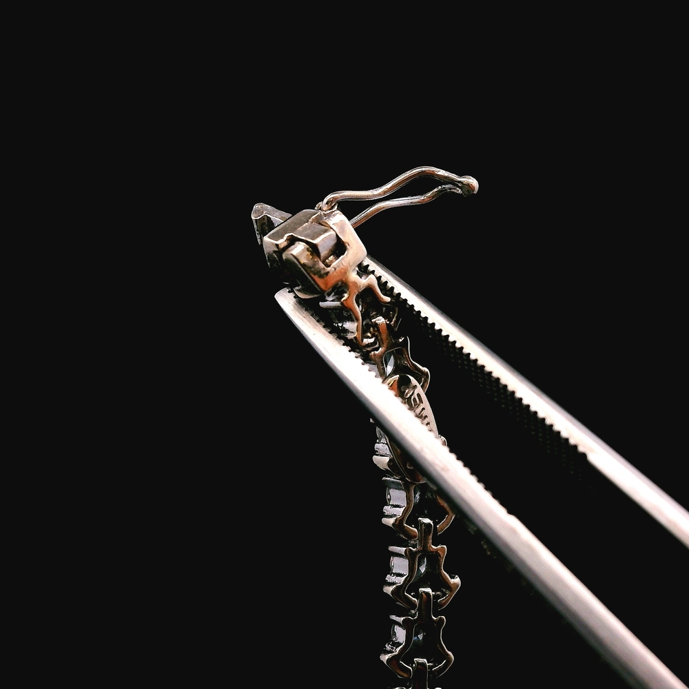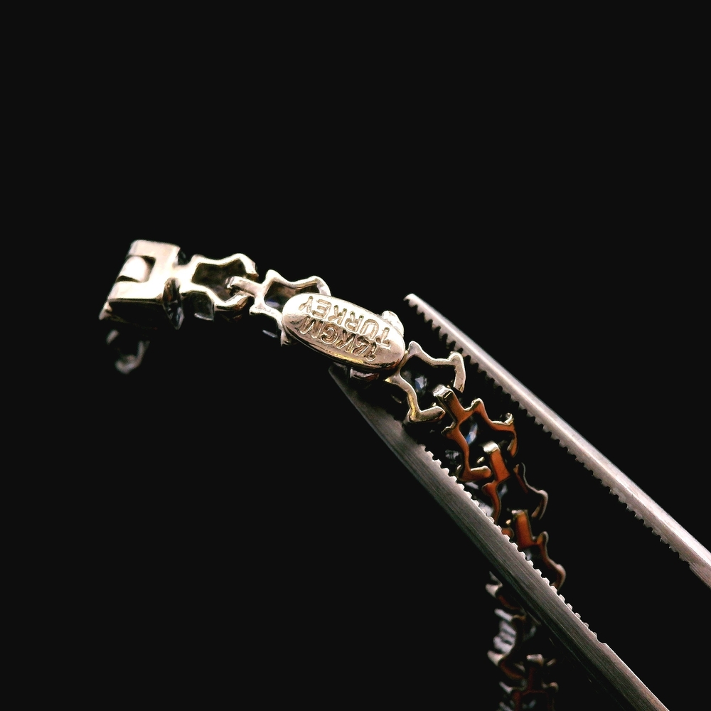 Esta pulsera en oro blanco de 14KT presenta piedras CZ brillantes en un diseño elegante, ideal para uso diario o para combinar con otras pulseras. La pulsera mide 7 pulgadas de largo y tiene un peso total de 5.3 DWT (8.24 gramos). Incluye caja genérica de joyería.
