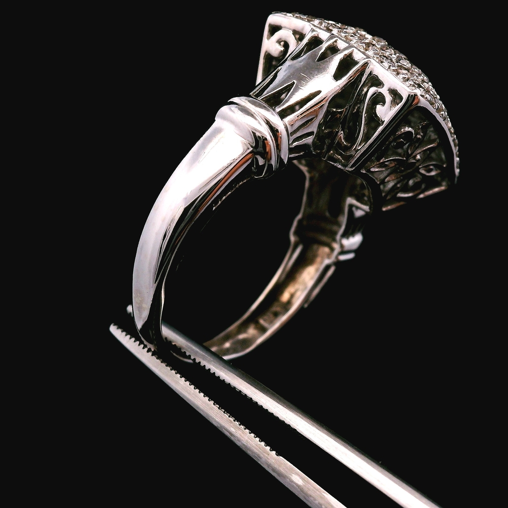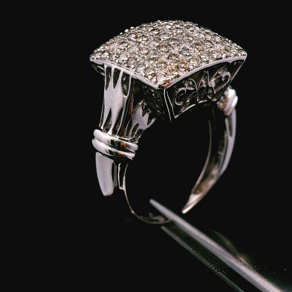 Este anillo de diamantes en oro blanco de 14KT cuenta con aproximadamente ¾ quilate en total, ofreciendo un brillo elegante y llamativo. Su estilo de banda clásica lo hace ideal para uso diario o para ocasiones especiales. Talla 8.5, con un peso total de 4.0 DWT (6.22 gramos).