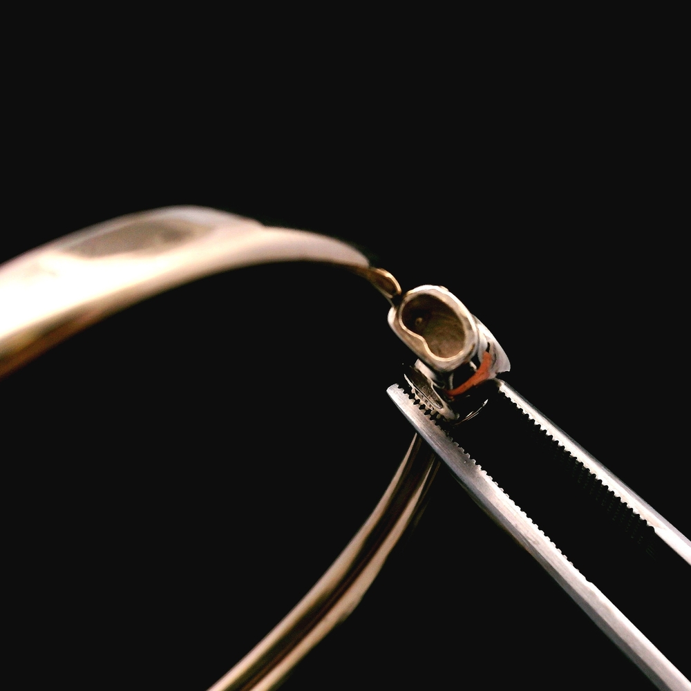 Shows light surface wear consistent with normal use. Stone is secure and the bangle is structurally solid.