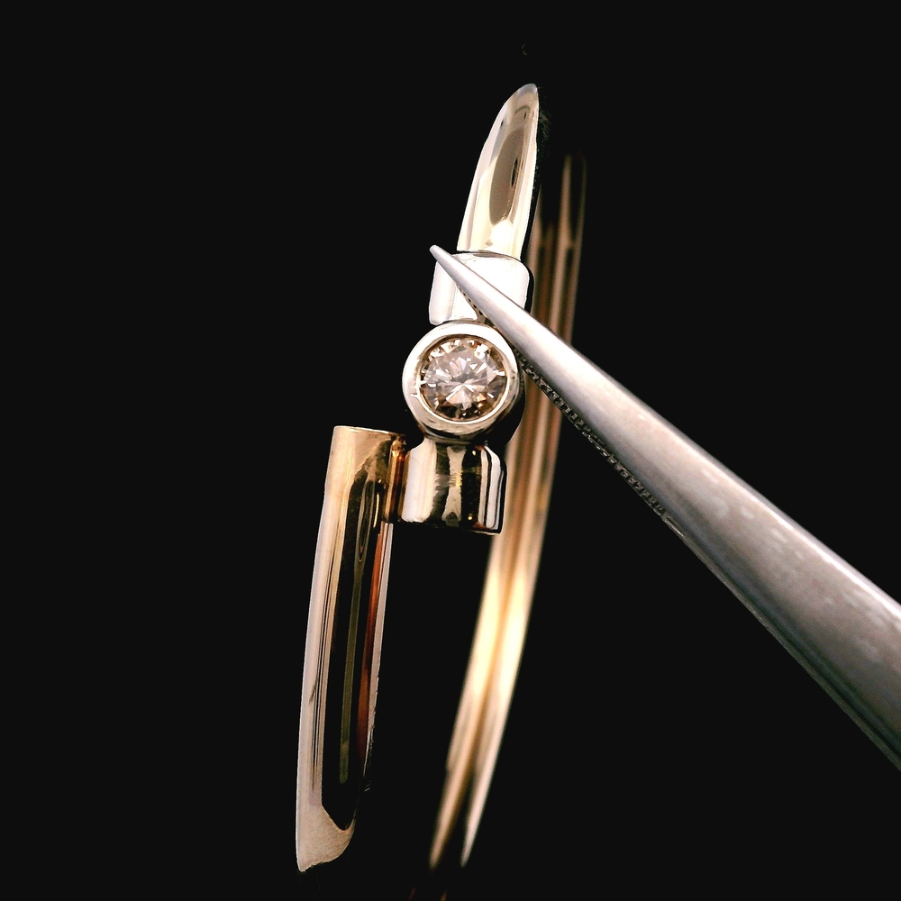 Esta pulsera rígida en oro amarillo de 14KT presenta aproximadamente .35 quilate en un diamante con claridad I1 y color Z, ofreciendo un tono cálido y distintivo. Su diseño pulido y sencillo es ideal para uso diario o para combinar con otras pulseras. Peso total de 5.1 DWT (7.93 gramos). Incluye caja genérica de joyería.