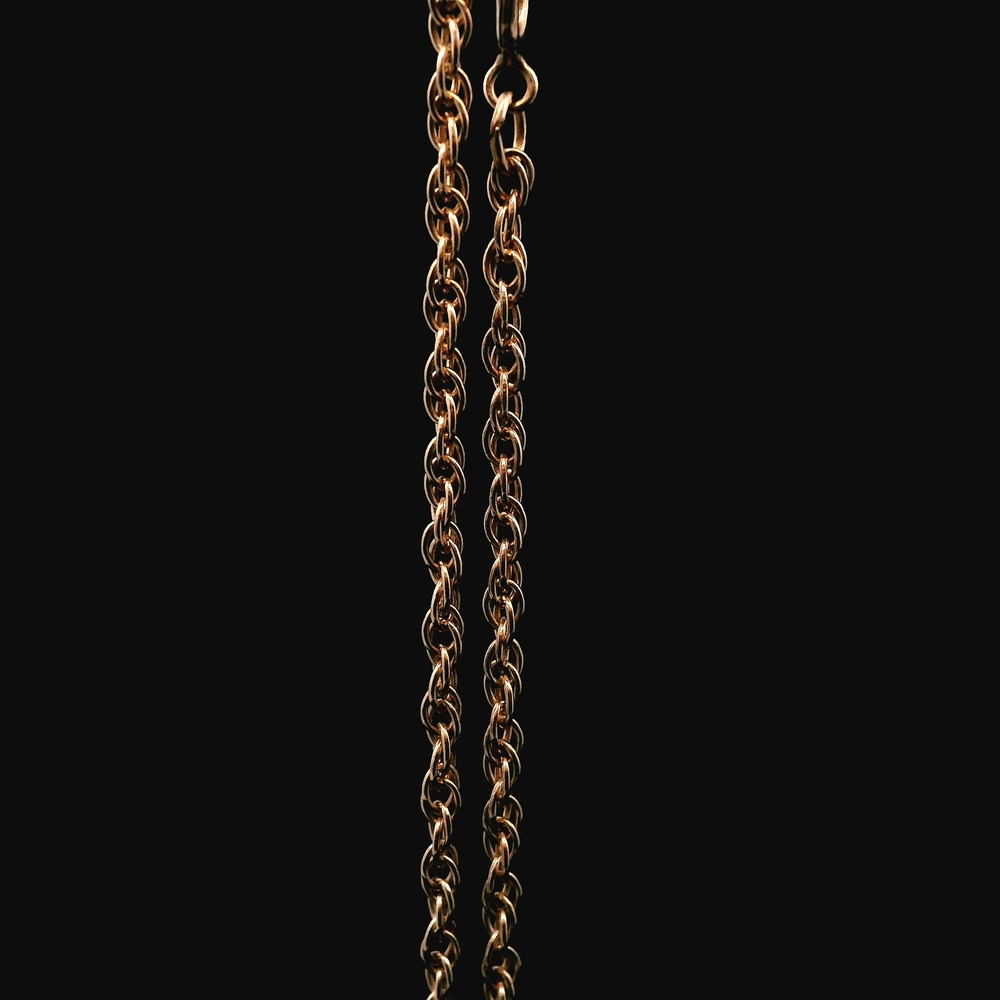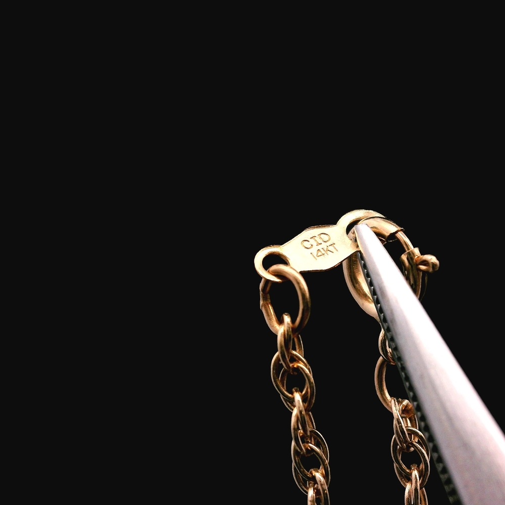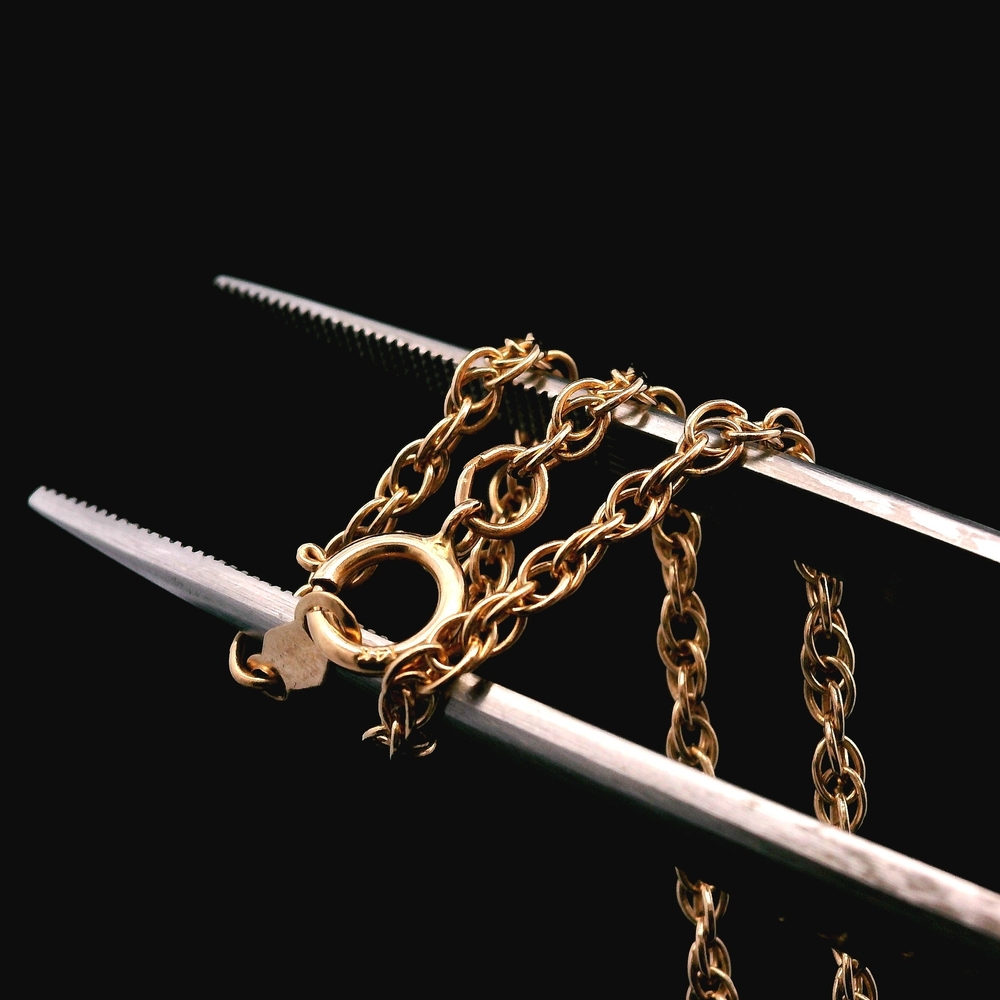 This 14KT yellow gold rope chain features a classic twisted design that works well on its own or paired with a pendant. Lightweight, comfortable, and versatile for daily wear.