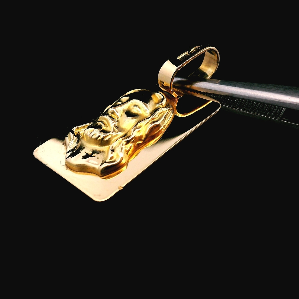 This high-quality piece of fine jewelry is an 18KT Yellow Gold pendant featuring a depiction of Jesus. Crafted in rich 18K gold, it offers a deeper yellow tone and higher purity than standard 14K pieces, making it a precious symbol of faith. Design: Jesus Material: 18KT Yellow Gold Weight: 2.10 dwt (approx. 3.27 grams) The item is in good condition. Please review all photos closely to assess cosmetic condition, the specific design details, and hallmarks as the item shown is the exact one you will receive.