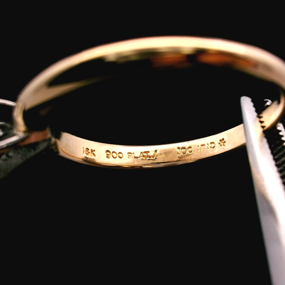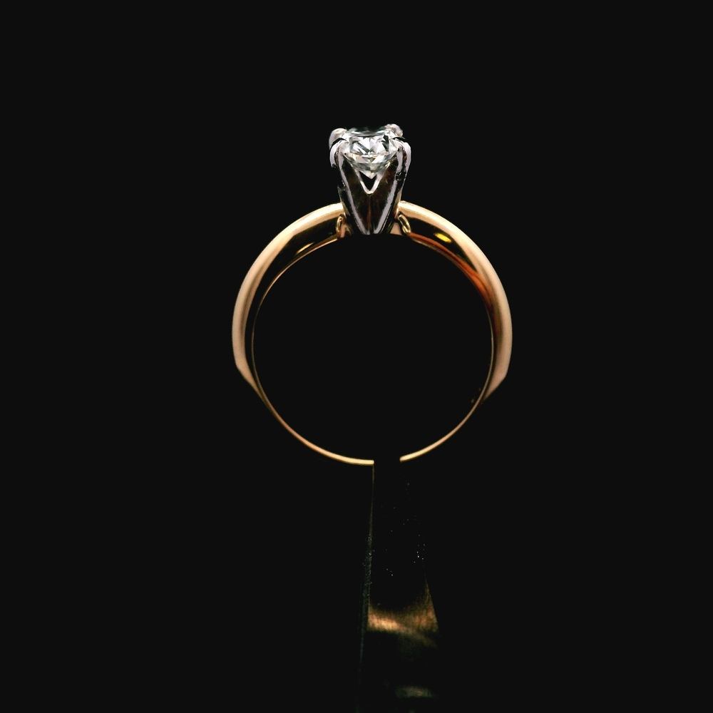 Descripción del Artículo: Este exquisito anillo está elaborado en oro amarillo de 18K y platino. Presenta un diamante de aproximadamente 0.75 ct con Claridad SI1 y Color F-G. Es una talla 6.25 y tiene un peso total de 2.2 dwt (aproximadamente 3.4 gramos). El artículo está en buenas condiciones. Por favor revise todas las fotos detenidamente para evaluar la condición cosmética y las características naturales de la piedra, ya que el artículo que se muestra es exactamente el que recibirá. Tenga en cuenta: El precio puede variar dependiendo del precio del oro y la plata.