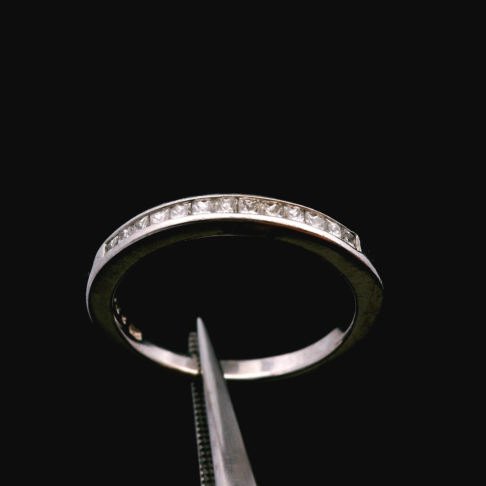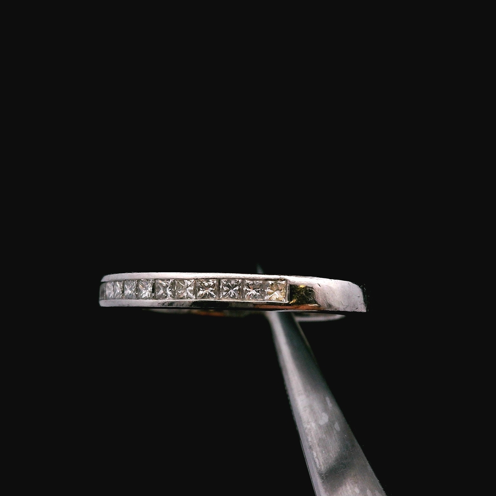 This platinum (.950) diamond band features approximately 1/4cttw in diamonds, offering clean sparkle across a durable and timeless platinum setting. Its slim, elegant profile makes it perfect for daily wear, stacking, or wedding/anniversary use when appropriate.