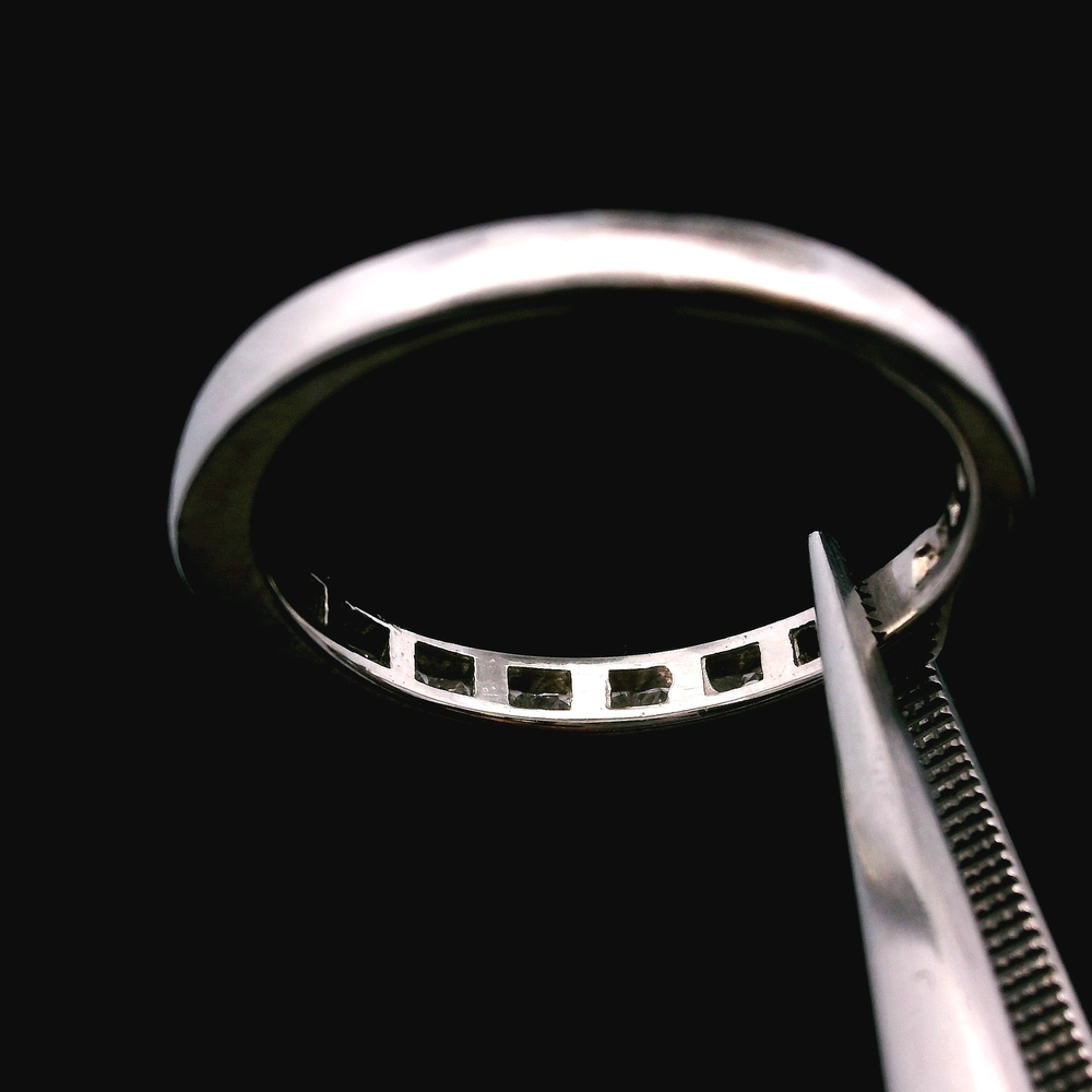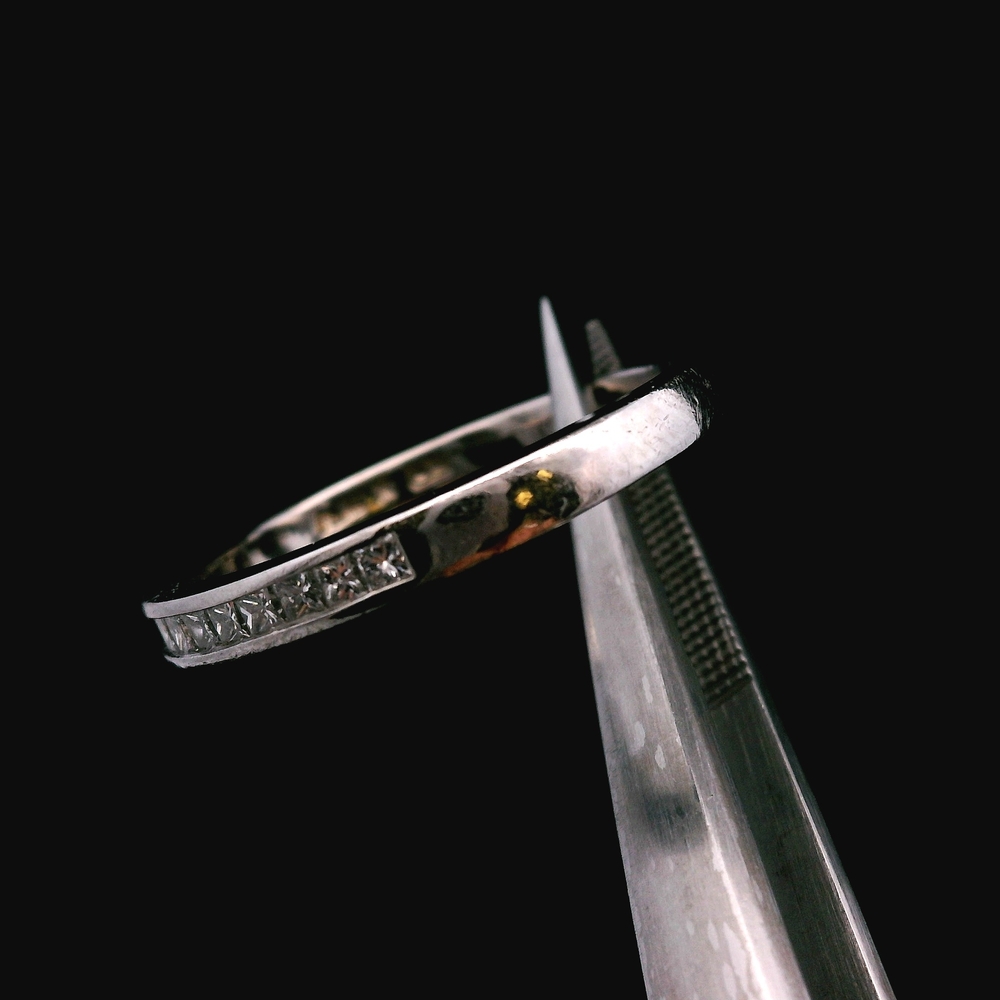 Shows light wear from normal use. Diamonds are secure and the band is structurally solid.