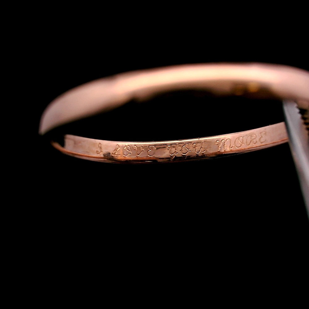 This classic band ring is crafted in 10K rose gold, offering a warm and romantic pink hue. It features a simple, polished design suitable for use as a wedding band or a stackable ring. It is a size 7.75 and has a total weight of 0.8 dwt (approximately 1.2 grams). The item is in good condition. Please review all photos closely to assess cosmetic condition as the item shown is the exact one you will receive. Please note: Price may vary depending on the price of gold and silver.