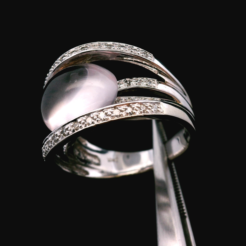 This stylish ring is crafted in 10K white gold and features a vibrant pink stone that adds a lovely pop of color. It is a size 6.5 and has a substantial feel with a total weight of 4.20 dwt (approximately 6.5 grams). The item is in good condition. Please review all photos closely to assess cosmetic condition as the item shown is the exact one you will receive. Please note: Price may vary depending on the price of gold and silver.