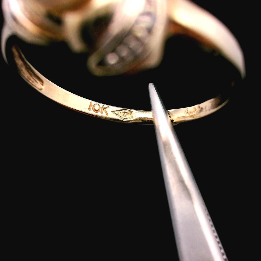 Descripción del Artículo: Este anillo clásico está elaborado en oro amarillo de 10K y presenta una lustrosa Perla acentuada por Diamantes brillantes. Es una talla 7.75 y tiene un peso total de 1.3 dwt (aproximadamente 2.0 gramos). El artículo está en buenas condiciones. Por favor revise todas las fotos detenidamente para evaluar la condición cosmética y las características naturales de las piedras, ya que el artículo que se muestra es exactamente el que recibirá. Tenga en cuenta: El precio puede variar dependiendo del precio del oro y la plata.