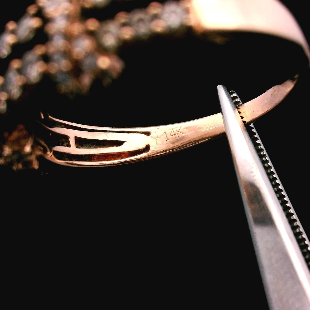 Descripción del Artículo: Este hermoso anillo de banda está elaborado en oro rosa de 14K y presenta aproximadamente 0.30 CTTW (30 puntos) de diamantes. Es una talla 8.25 y tiene un peso total de 2.10 dwt (aproximadamente 3.3 gramos). El artículo está en buenas condiciones. Por favor revise todas las fotos detenidamente para evaluar la condición cosmética y las características naturales de las piedras, ya que el artículo que se muestra es exactamente el que recibirá. Tenga en cuenta: El precio puede variar dependiendo del precio del oro y la plata.