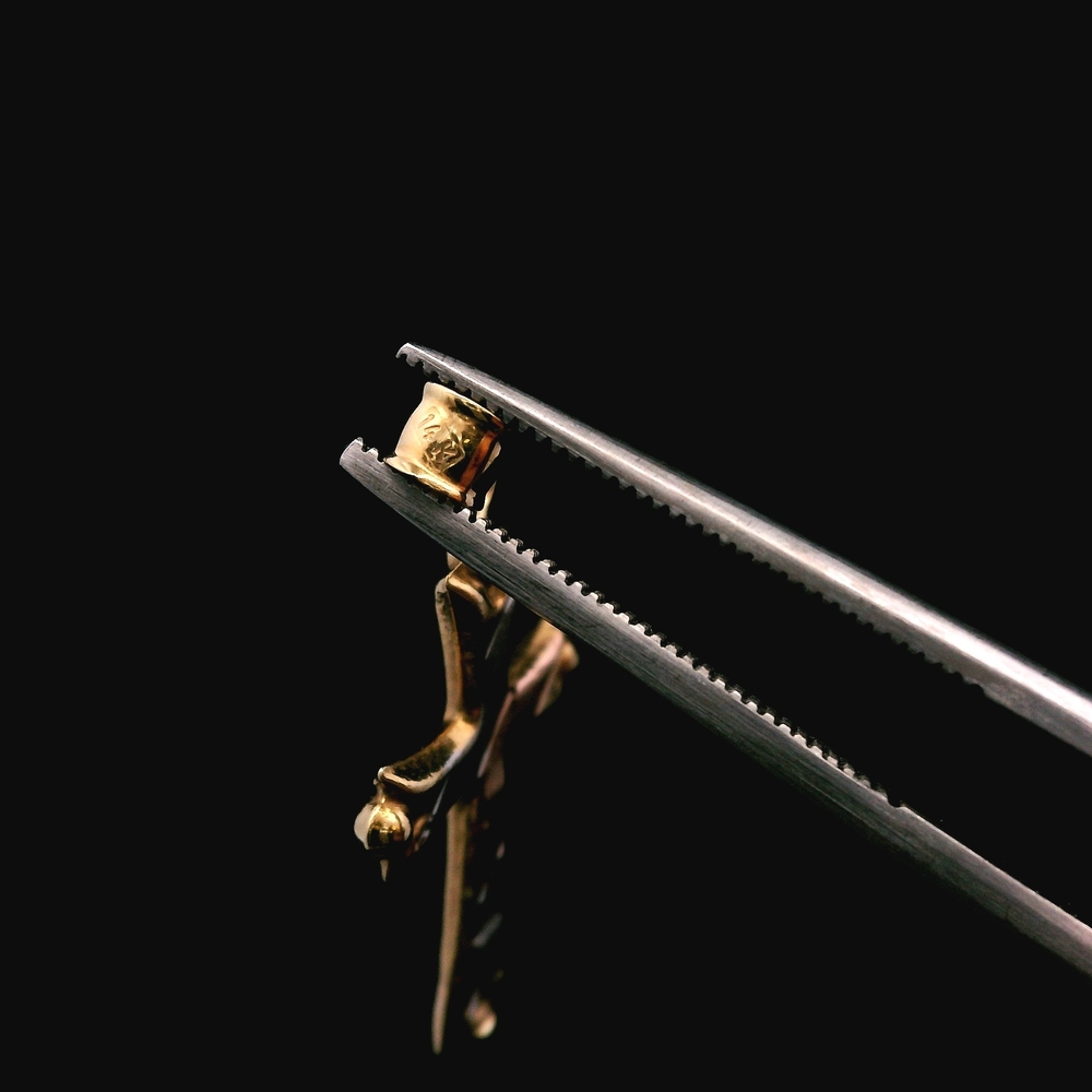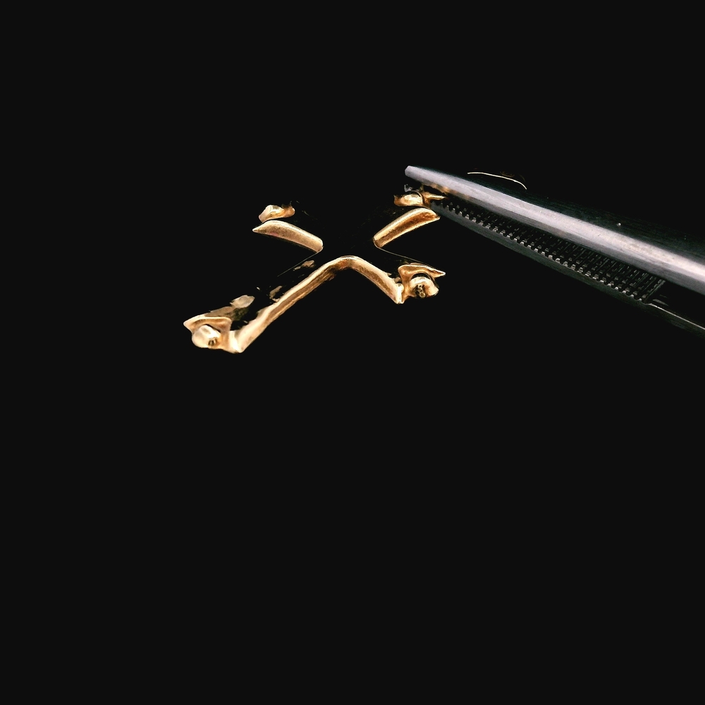 Este pequeño dije de cruz está elaborado en oro tricolor de 14K, presentando una hermosa combinación de tonos de oro amarillo, blanco y rosa. El peso total es de 0.20 dwt (aproximadamente 0.3 gramos). El artículo está en buenas condiciones. Por favor revise todas las fotos detenidamente para evaluar la condición cosmética, ya que el artículo que se muestra es exactamente el que recibirá. Tenga en cuenta: El precio puede variar dependiendo del precio del oro y la plata.