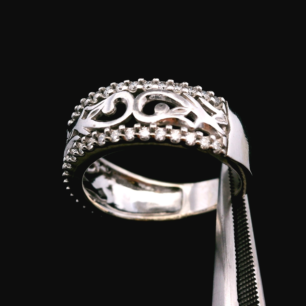Item Description: This elegant ring is crafted in 14K white gold and features approximately 1/5 CTTW of diamonds. It is a size 7 and has a total weight of 3.2 dwt (approximately 5.0 grams). The item is in good condition. Please review all photos closely to assess cosmetic condition and the natural characteristics of the stones as the item shown is the exact one you will receive. Please note: Price may vary depending on the price of gold and silver.