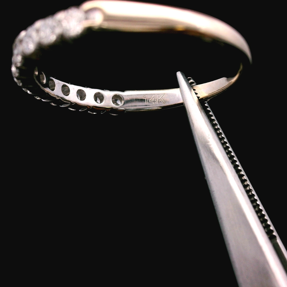 Este elegante anillo para dama está elaborado en oro blanco de 14K y brilla con aproximadamente 1/2 quilate de peso total de diamantes. Es talla 7 y tiene un peso total de 1.20 dwt (aproximadamente 1.9 gramos). El artículo está en buenas condiciones. Por favor revise todas las fotos detenidamente para evaluar la condición cosmética, ya que el artículo que se muestra es exactamente el que recibirá. Tenga en cuenta: El precio puede variar dependiendo del precio del oro y la plata.