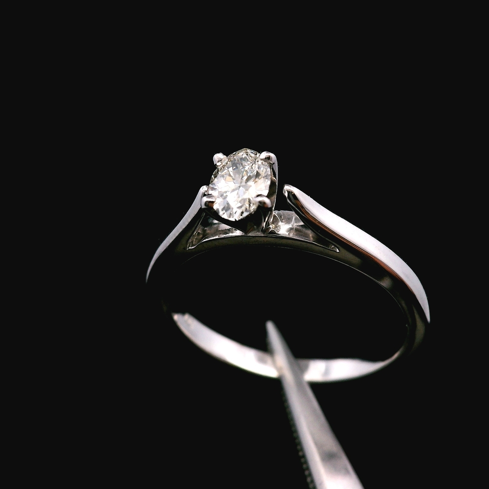 Item Description: This elegant ring is crafted in 14K white gold and features a sparkling 0.31 ct Oval cut diamond. It is a size 6.75 and has a total weight of 2.00 dwt (approximately 3.1 grams). The item is in good condition. Please review all photos closely to assess cosmetic condition and the natural characteristics of the stone as the item shown is the exact one you will receive. Please note: Price may vary depending on the price of gold and silver.