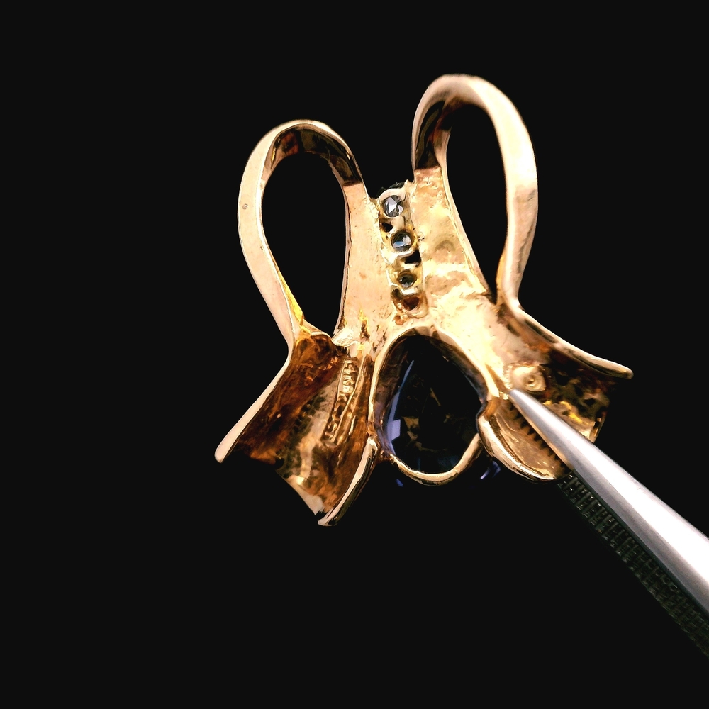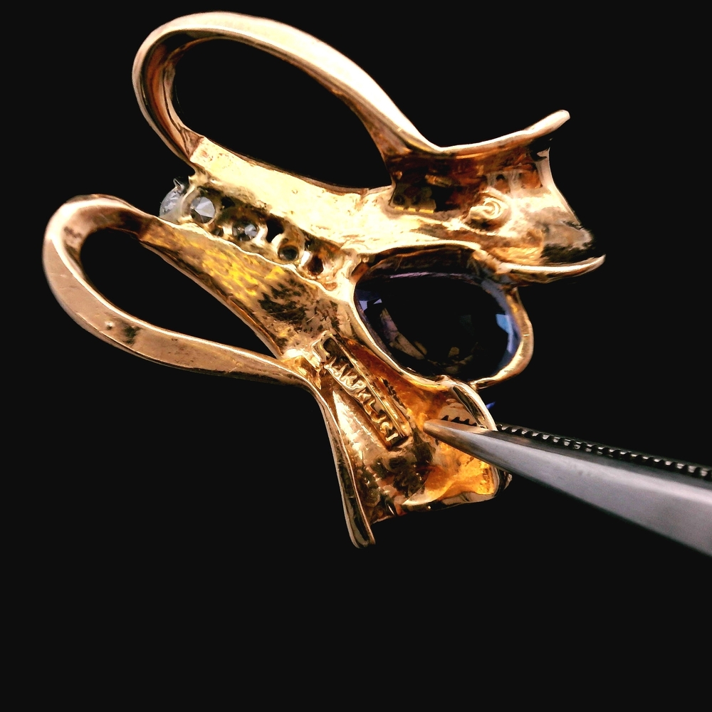 Descripción del Artículo: Esta exquisita pieza de joyería fina es un dije de Oro Amarillo de 14KT que presenta una vibrante gema de Tanzanita de 2.50 quilates. La llamativa piedra central azul violeta está elegantemente enmarcada por aproximadamente 0.27 quilates de acentos de diamantes brillantes, creando un aspecto sofisticado. Piedra Principal: Tanzanita de 2.5 CT Piedras de Acento: Diamantes (aprox. 0.27 cttw) Peso: 3.40 dwt (aprox. 5.29 gramos) El artículo está en buenas condiciones. Por favor revise todas las fotos detenidamente para evaluar la condición cosmética, el color/claridad de las piedras y los sellos, ya que el artículo que se muestra es exactamente el que recibirá.