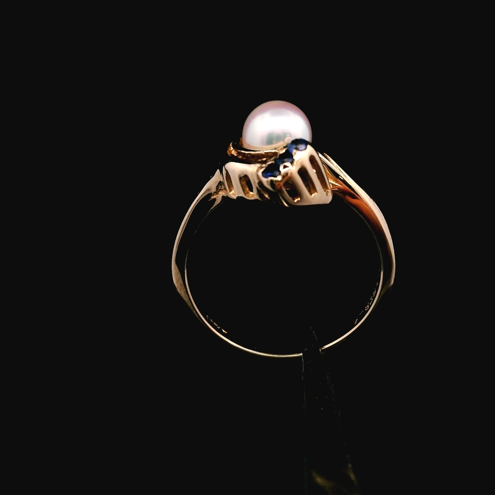 Descripción del Artículo: Este anillo clásico está elaborado en oro amarillo de 14K y presenta una lustrosa Perla acentuada por Zafiros. Es una talla 6.5 y tiene un peso total de 1.8 dwt (aproximadamente 2.8 gramos). Tenga en cuenta: Este anillo está personalizado con un grabado del nombre "Kimberly" en el interior de la banda. El artículo está en buenas condiciones. Por favor revise todas las fotos detenidamente para evaluar la condición cosmética y las características naturales de las piedras, ya que el artículo que se muestra es exactamente el que recibirá. Tenga en cuenta: El precio puede variar dependiendo del precio del oro y la plata.