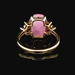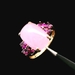 Este anillo único está elaborado en oro amarillo de 14K y presenta una combinación de Jadeíta Rosa y una piedra rosa sintética. Los suaves tonos rosados crean un aspecto encantador y femenino. Es talla 9.25 y tiene un peso total de 4.60 gramos (aproximadamente 2.96 dwt). El artículo está en buenas condiciones. Por favor revise todas las fotos detenidamente para evaluar la condición cosmética y las características de las piedras, ya que el artículo que se muestra es exactamente el que recibirá. Tenga en cuenta: El precio puede variar dependiendo del precio del oro y la plata.