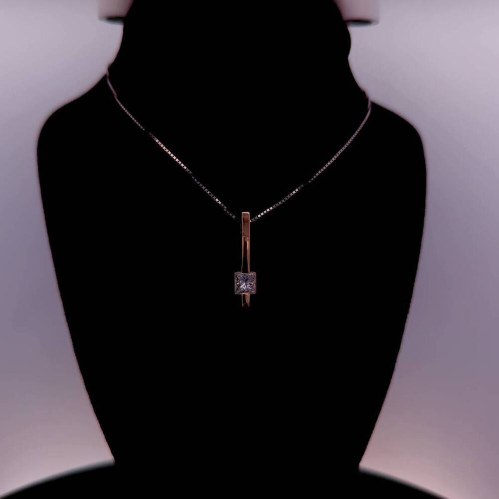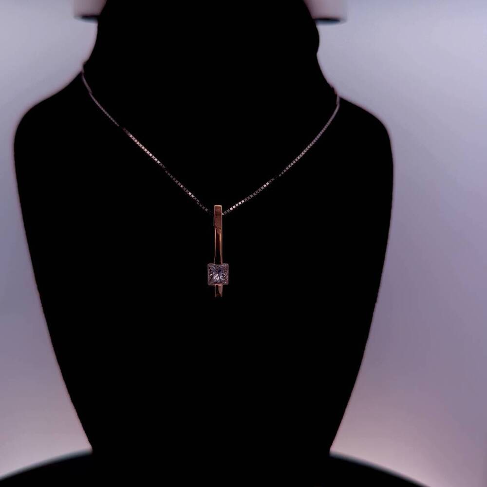 Enhance your jewelry collection with this stunning 14kt white gold necklace featuring a square-shaped pendant adorned with a natural princess-cut diamond. The pendant is suspended from an 18-inch box chain with a lobster closure, making it easy to wear and remove. The diamond has a clarity grade of Included (I2) and a color grade of G, adding to its overall charm and elegance. The necklace has a total weight of 2.20dwt and is perfect for any occasion, formal or casual.