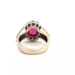 This exquisite halo ring features a stunning 2.5-carat ruby, elegantly surrounded by a brilliant array of diamonds totaling 1 carat in weight. Crafted from 14KT white gold, the ring weighs 7.93 grams and is designed in a size 6.25, making it a perfect statement piece for any occasion. The vibrant ruby and sparkling diamonds create a captivating contrast, ensuring this ring will be a cherished addition to any jewelry collection.
