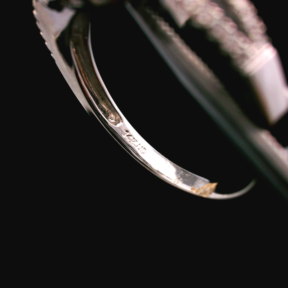 Light normal wear. Diamonds are secure and the ring is structurally solid.