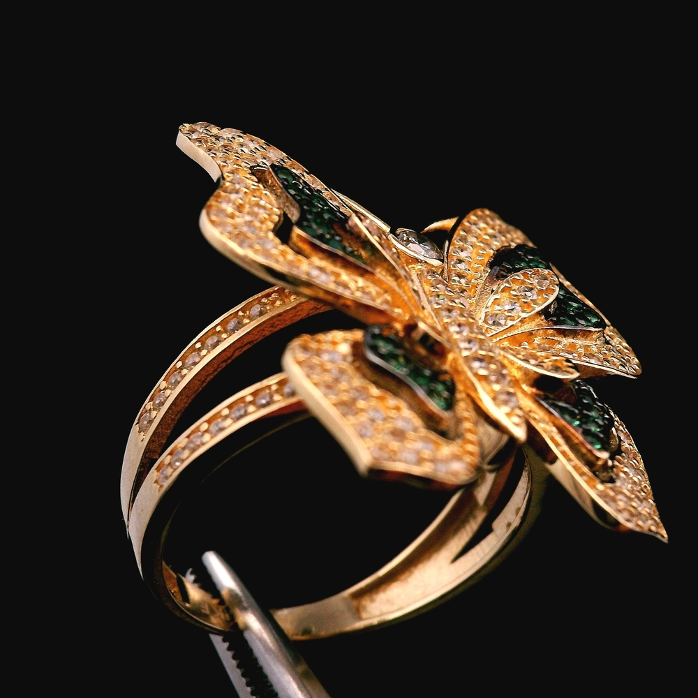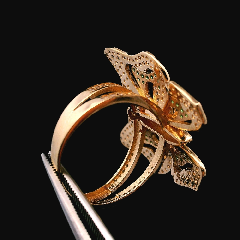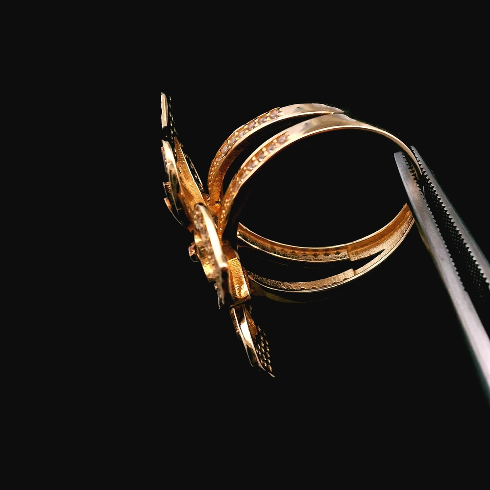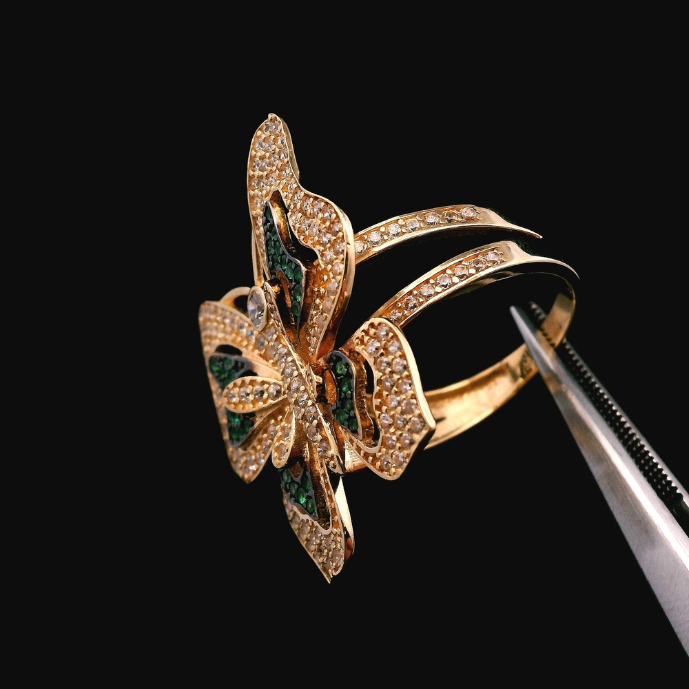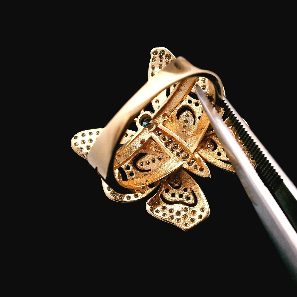 Este anillo de mariposa en oro amarillo de 14KT presenta un diseño encantador y llamativo con un acabado pulido que luce hermoso en la mano. Ligero con sensación sólida, es ideal para uso diario. Talla 8 y peso total de 3.90 DWT (6.06 gramos). Incluye caja genérica para anillo.