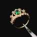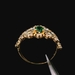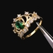 This 14KT yellow gold crown ring features green CZ stones arranged in a regal and eye-catching design. The bold shape gives it a standout presence whether worn alone or stacked. Ring size 7, with a total weight of 2.30 DWT (3.58 grams). Includes a generic ring box.