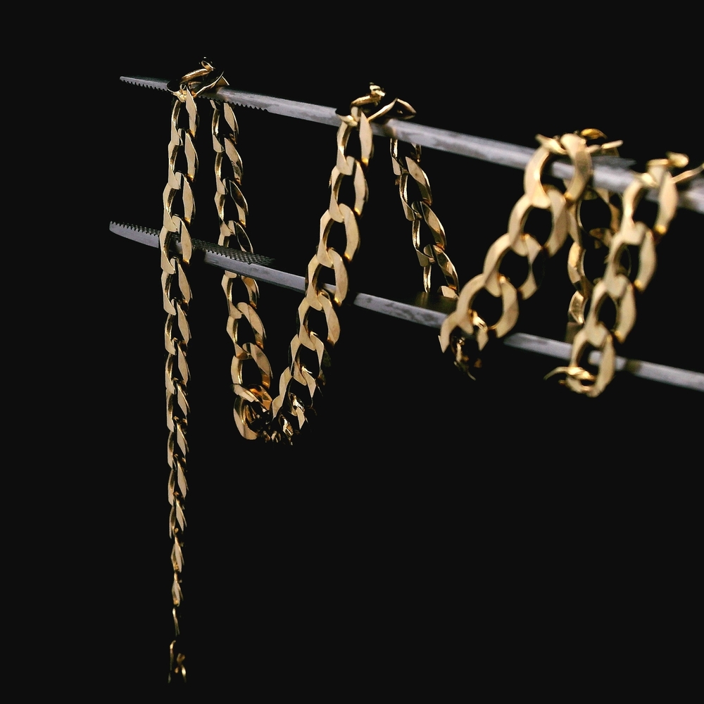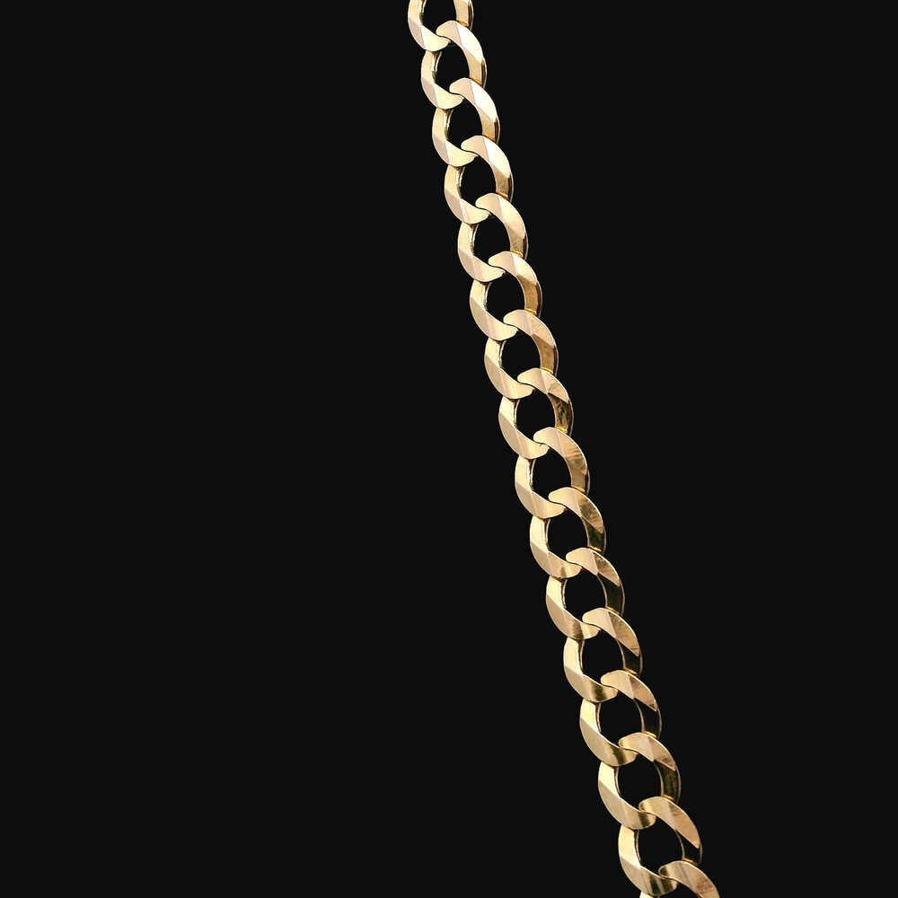 Esta cadena tipo cubana de oro amarillo de 14KT presenta eslabones redondeados y entrelazados que le dan un aspecto sólido y lujoso. Conocida por su resistencia y brillo distintivo, es ideal para usar sola o con un dije.