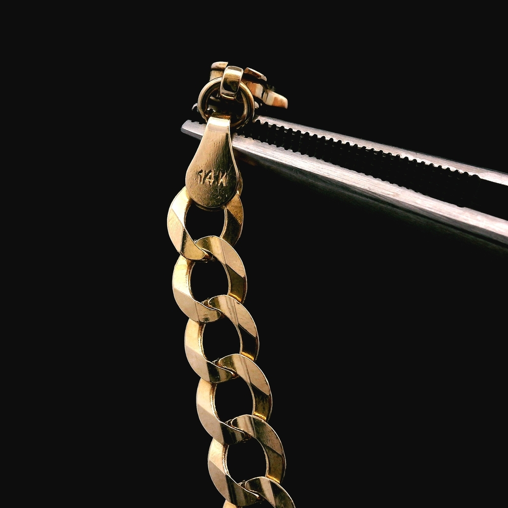 This 14KT yellow gold Cuban link chain features tightly woven, rounded links that give it a bold and luxurious look. Known for its strength and signature shine, this classic style is perfect for wearing on its own or pairing with a pendant.