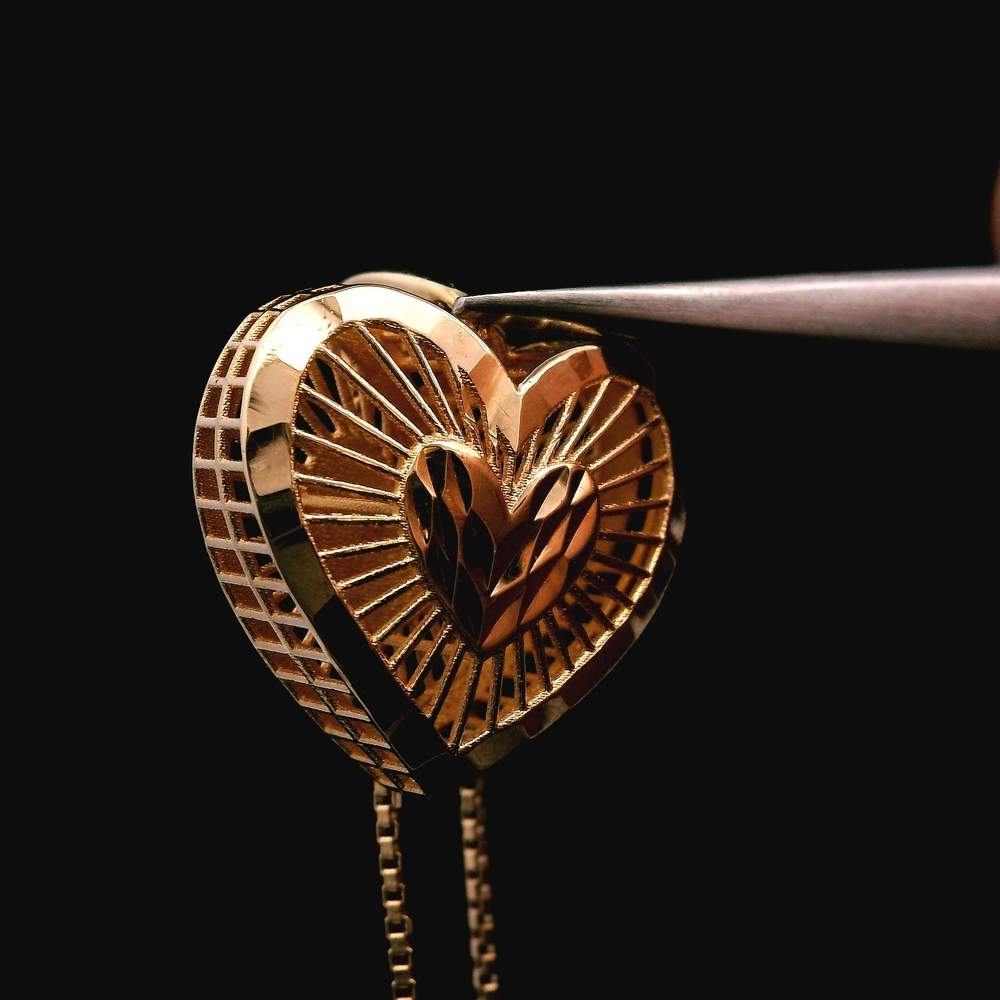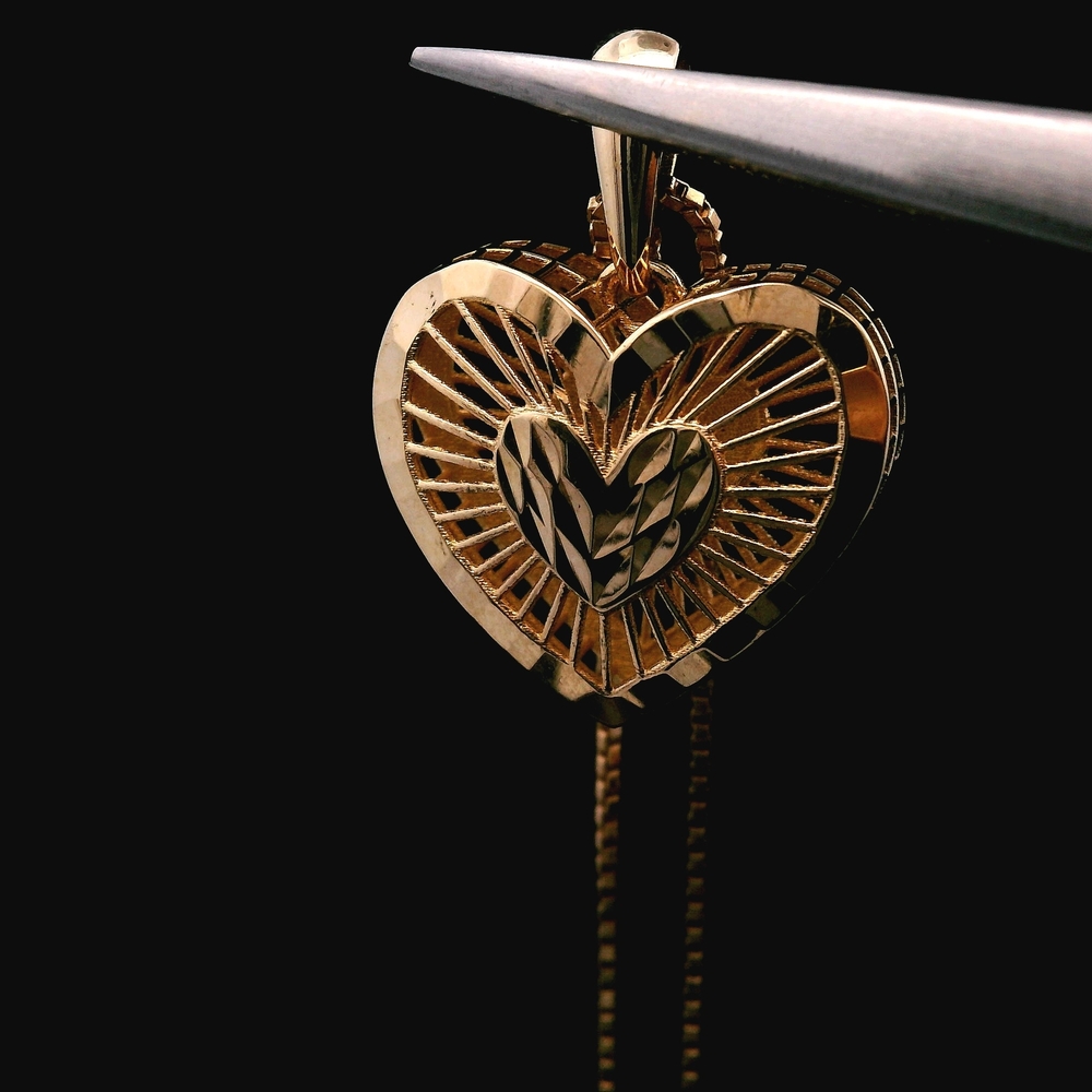 Este collar de oro amarillo de 14KT incluye un dije de corazón con una cadena de 18 pulgadas, ofreciendo un estilo dulce y atemporal ideal para uso diario. El tono cálido del oro y el diseño sencillo lo hacen perfecto para usar solo o en capas.