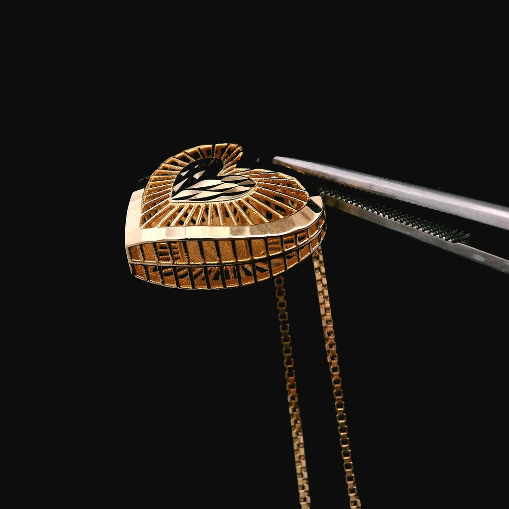 Presenta desgaste ligero normal. El dije y la cadena están estructuralmente sólidos.