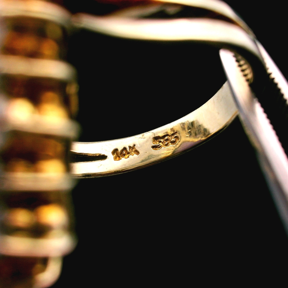 Desgaste ligero normal. Las piedras están seguras y la pieza es sólida.