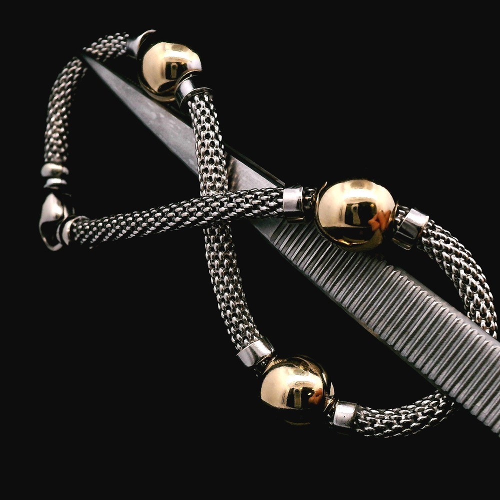 This 14KT yellow gold two-tone bracelet features a stylish contrast of gold tones, giving it a versatile and modern look. The polished finish adds a touch of elegance, while the solid construction makes it suitable for daily wear.