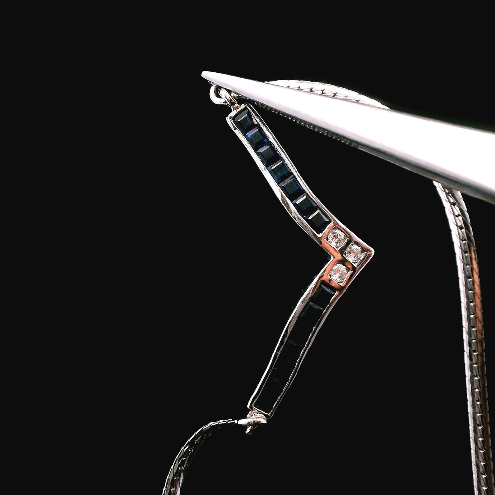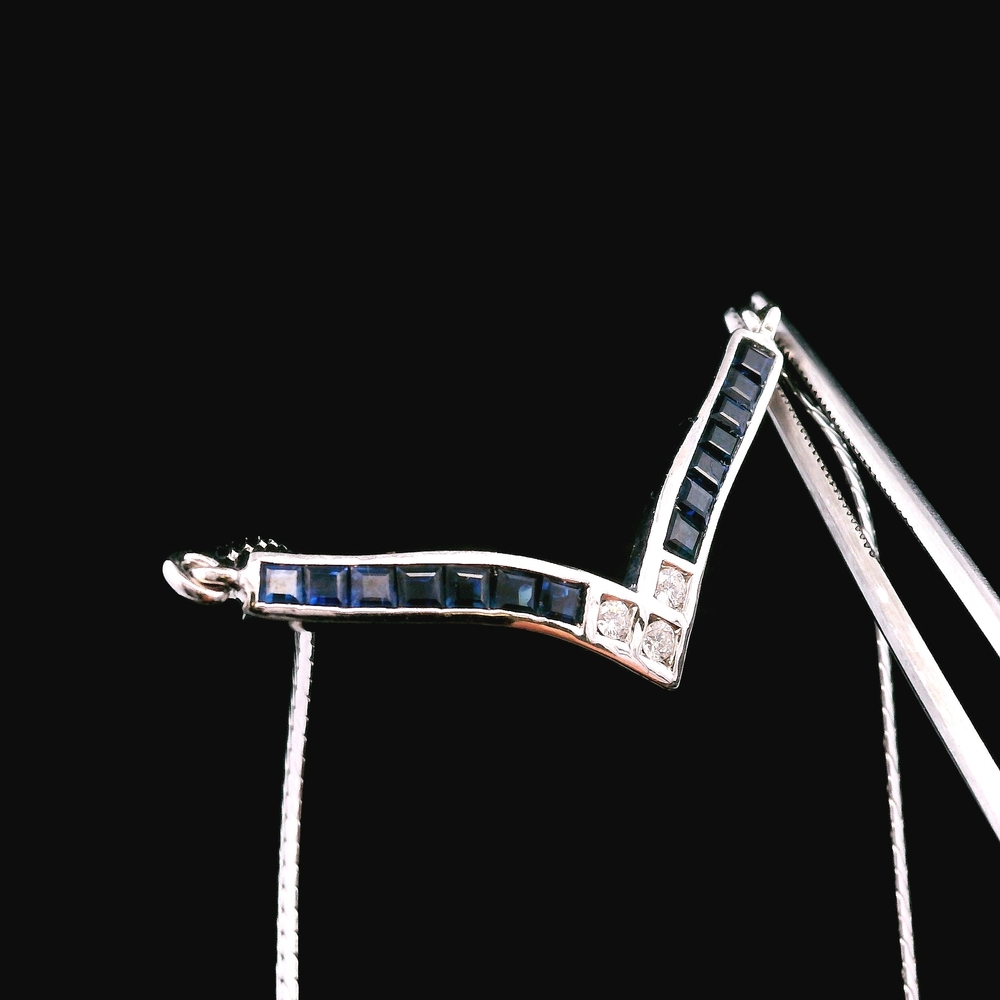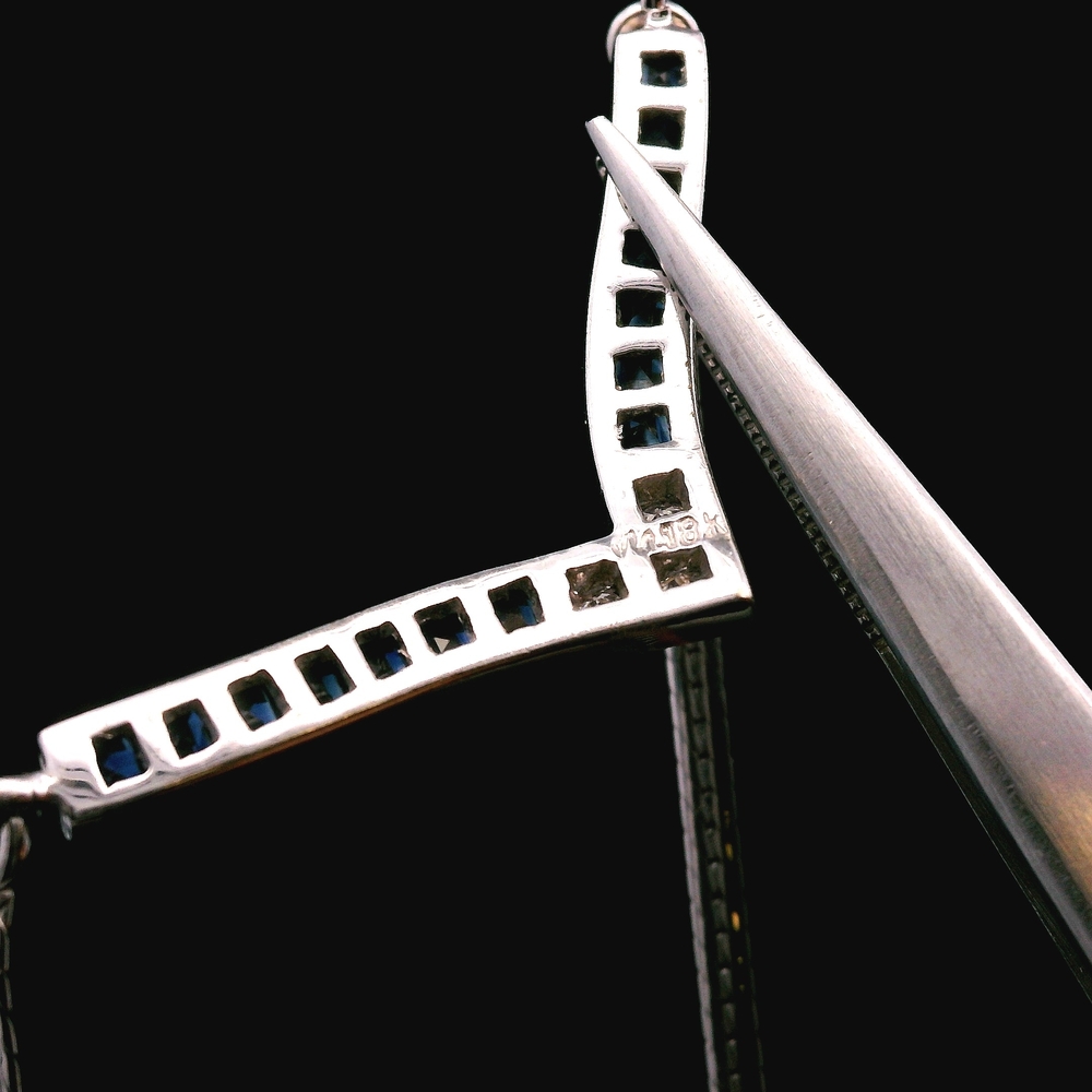 Gold 18kt White Chain & Pendant 18.00dwt SAPH/DIAM SET (RING/NECKLACE/BRACELET) Loc:Jewelry Case 14