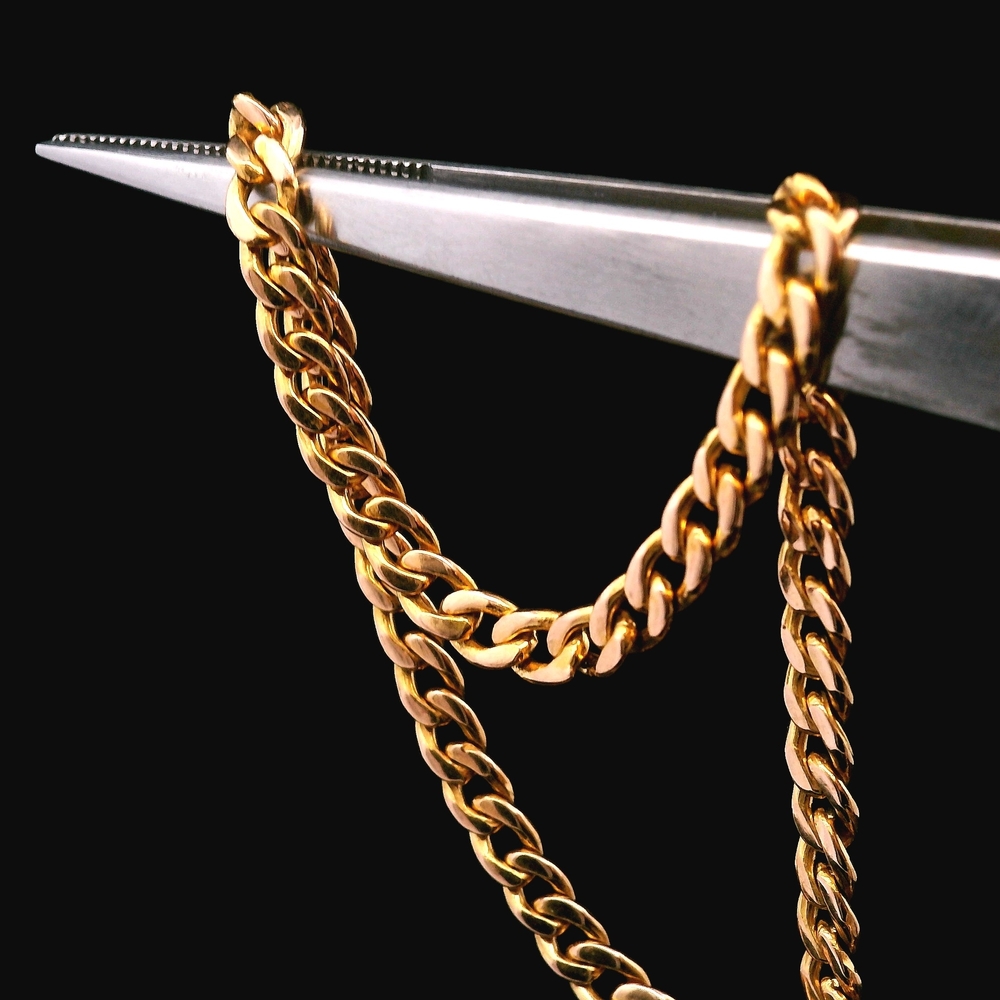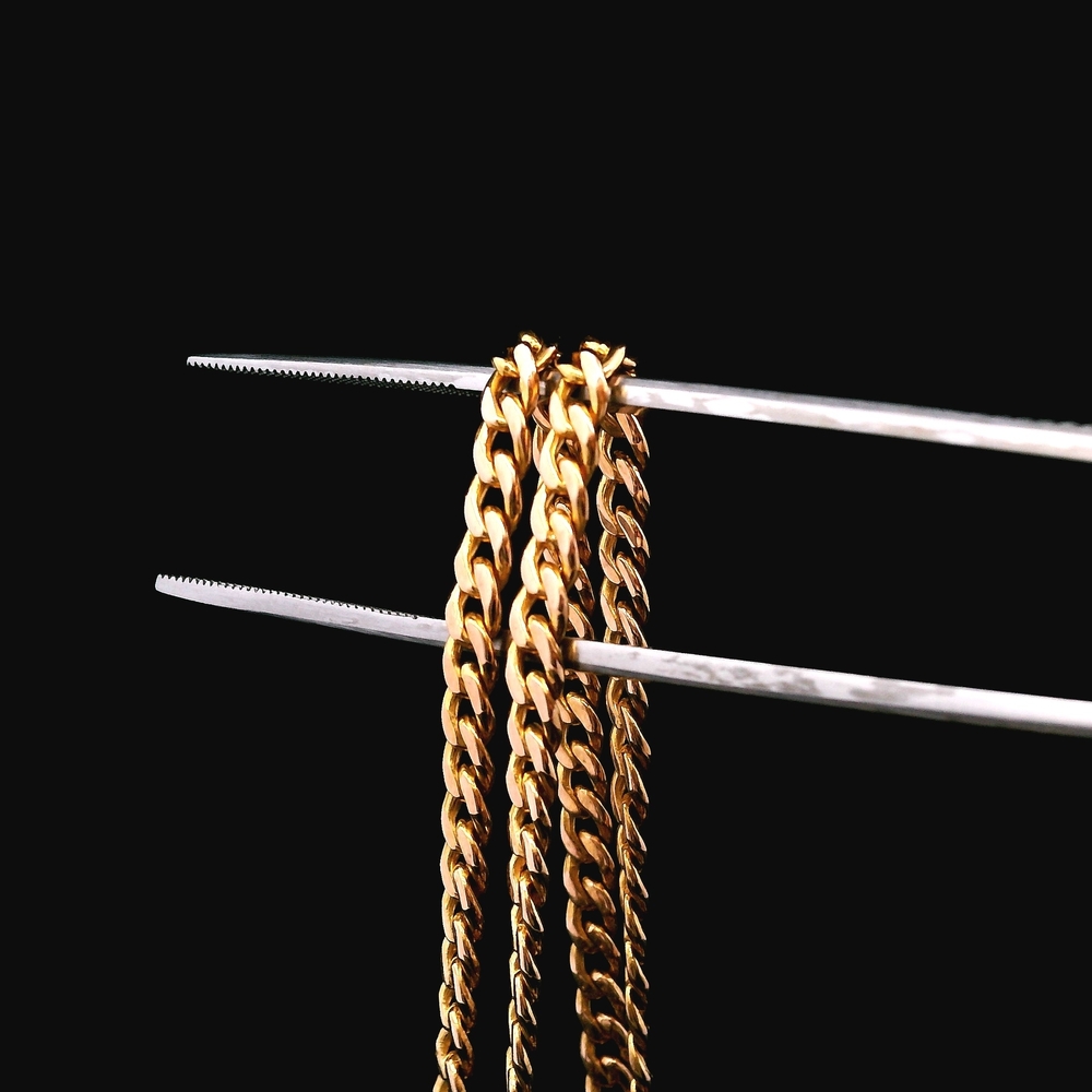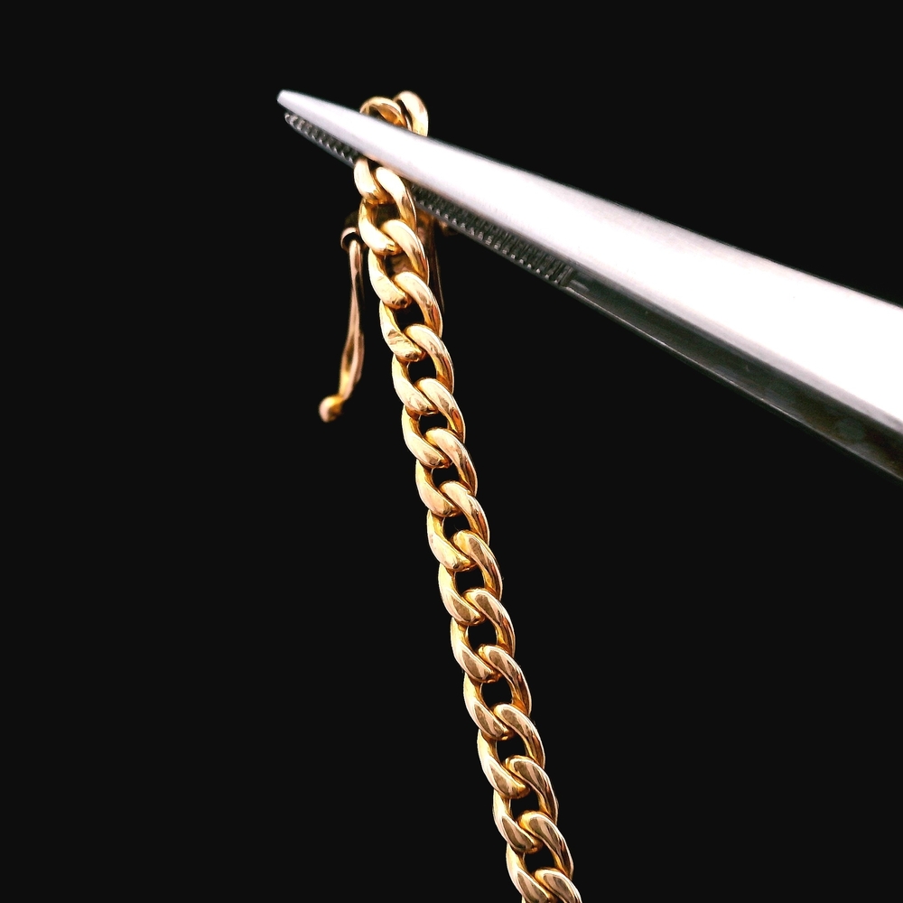 This 18KT yellow gold chain offers a bold, solid feel with a warm, rich gold tone. Suitable for wearing on its own or pairing with a pendant. Strong presence and comfortable weight.