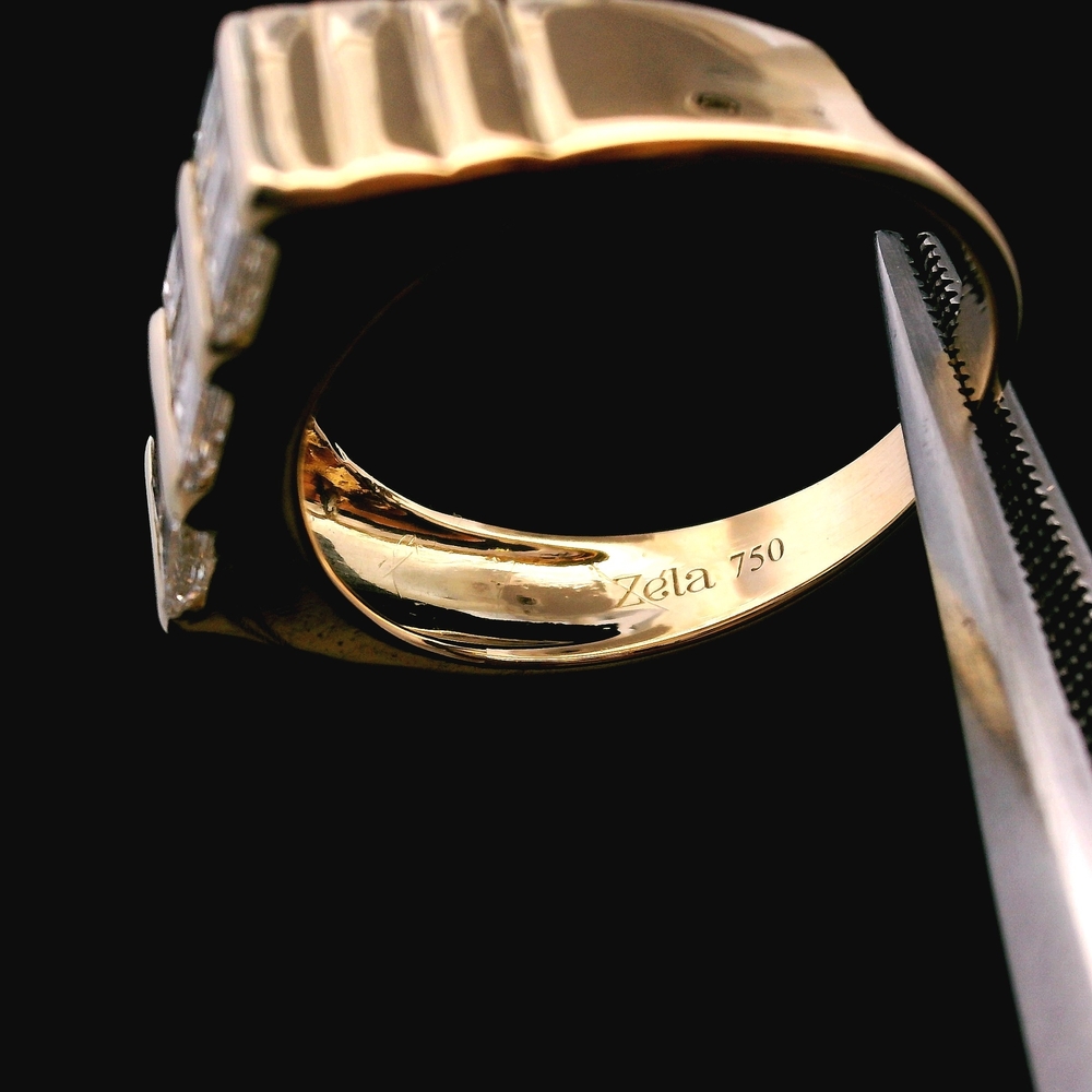 Este anillo de oro amarillo de 18KT incluye aproximadamente 1cttw en diamantes, ofreciendo una presencia brillante y llamativa. El engaste de oro resalta el brillo de las piedras, creando un estilo audaz pero refinado, ideal para uso diario o para ocasiones especiales.